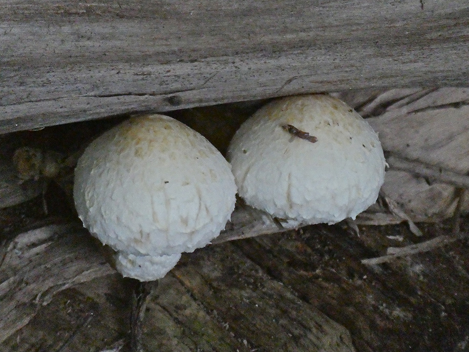 The flesh is thick, firm, and white. It does not change color when sliced. It is edible but tough and the taste is disagreeable.