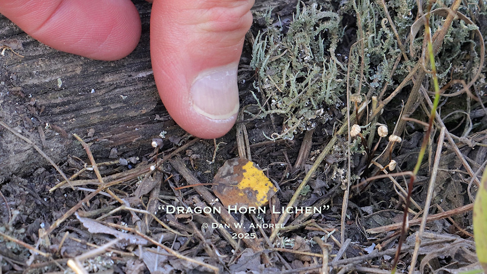 Another Dragon Horn... Here is another dragon horn lichen I came across. I like when there has been adequate moisture they seem to have a bit brighter color than when it has been hot and dry etc. conditions. Real interesting growth formations. This one kind a looks like it has a long necked creature on the right side with a small head and pointed ears etc. If one uses their imagination. 😊 |