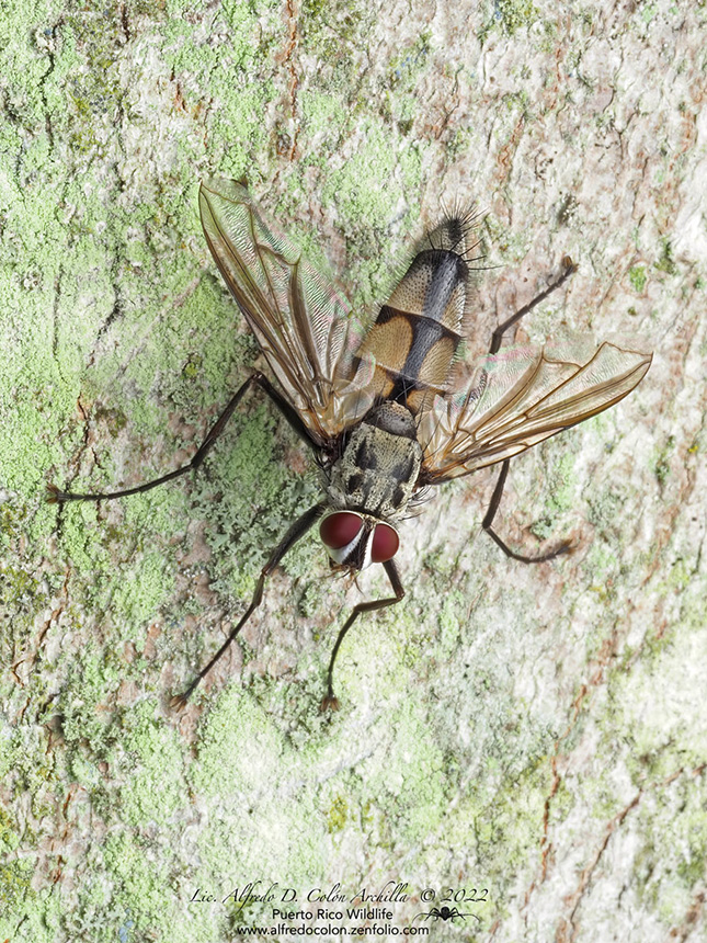 This species has no common name. The common name for the family Tachinidae is tachinid flies, and it is applied here for convenience.