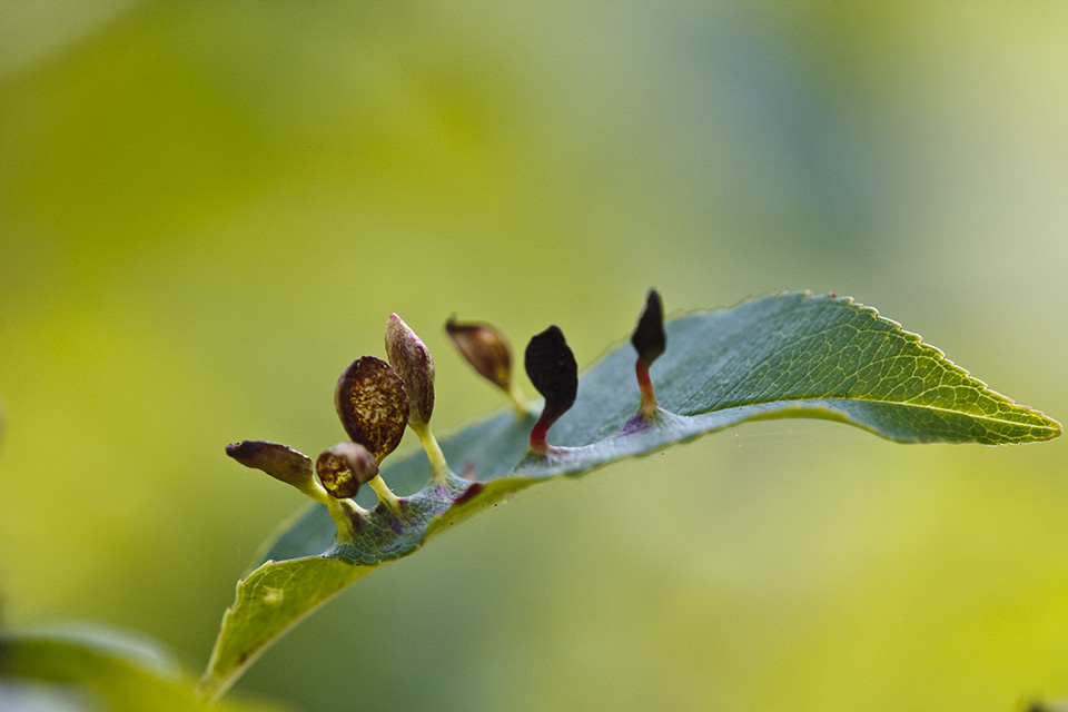 This is the only species that causes finger galls on the hosts listed below. It is not found on other plant species, and other mite species do not produce finger galls on these plants.. |