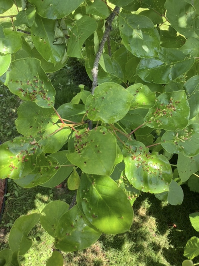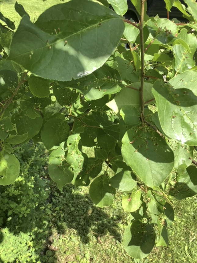 In Minnesota, leaves of American plum, chokecherry, and European plum. |