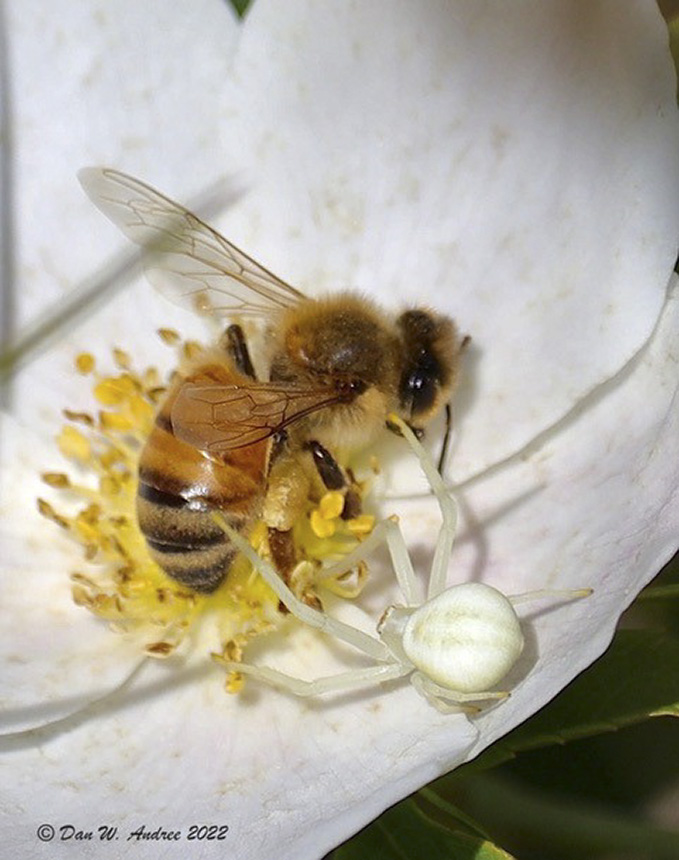 #"Western Honey Bee & White-banded Crab Spider" filmed by Dan W Andree |