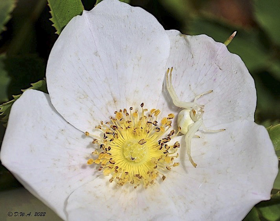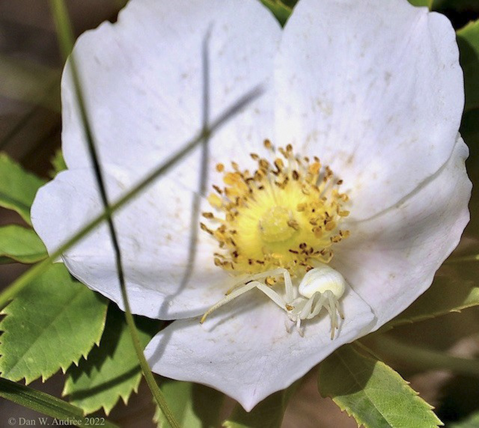 White-banded crab spider... White-banded crab spiders seem to be less common in areas where I have come across crab spiders in general. I see more Northern and Goldenrod and only came across the one White-banded. Yet even though it was windy that day the interaction of the spider with the Western honey bee is one of my favorite video segments. Also I was fortunate to have my external mic and wind muff on so you can see and hear it is quite windy but the wind noise is muffled and easy to listen to. Also the imagery though I had to manually focus turned out clear and focused. I have checked other times for any white-banded crab spider but haven’t seen any more but regularly come across other species. It kind of reminded me of a little white octopus trying to catch that bee.🙂 |