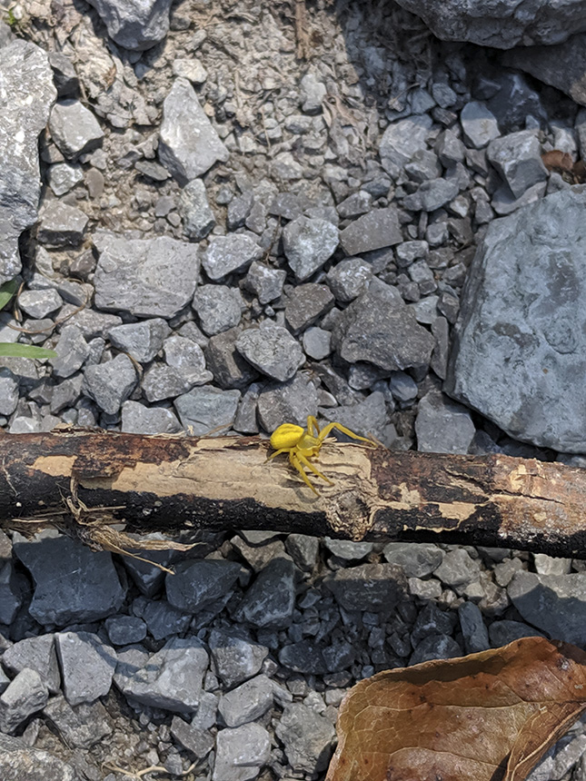 Possibly a White-banded Crab Spider?? It was pretty much mostly all white. Seen it at the Twin Valley Prairie on 7-13-23 … It tried to catch a Great Spangled Fritillary twice but wasn’t successful. It did eventually catch some type of fly insect. I filmed it trying to latch on to the Great Spangled Fritillary twice and it was the same butterfly just a few minutes apart. |