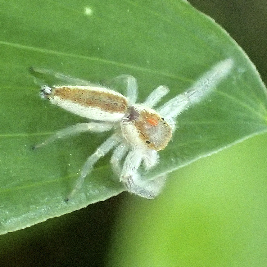 Hentzia mitrata white-jawed jumping spider Hentzia mitrata, white-jawed jumping spider, photographed at Barnes Prairie Hedgerow, Racine Co., Wisconsin on May 31, 2023. |