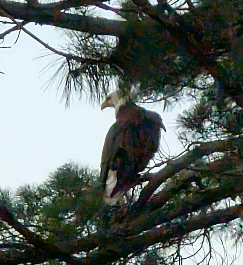 We had an eagle in the yard today. He sat contently in the tree until a loud vehicle went by. |