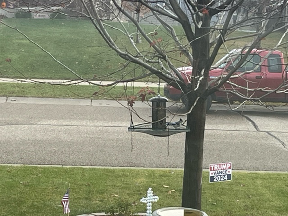 Location: Delano MN Four separate birds visit our homes bird feeder. |