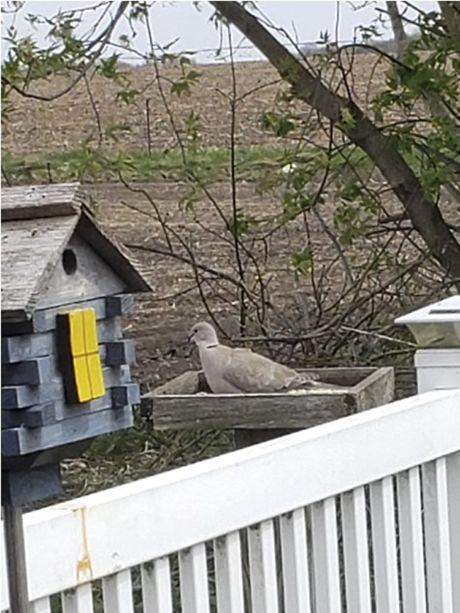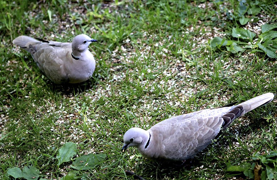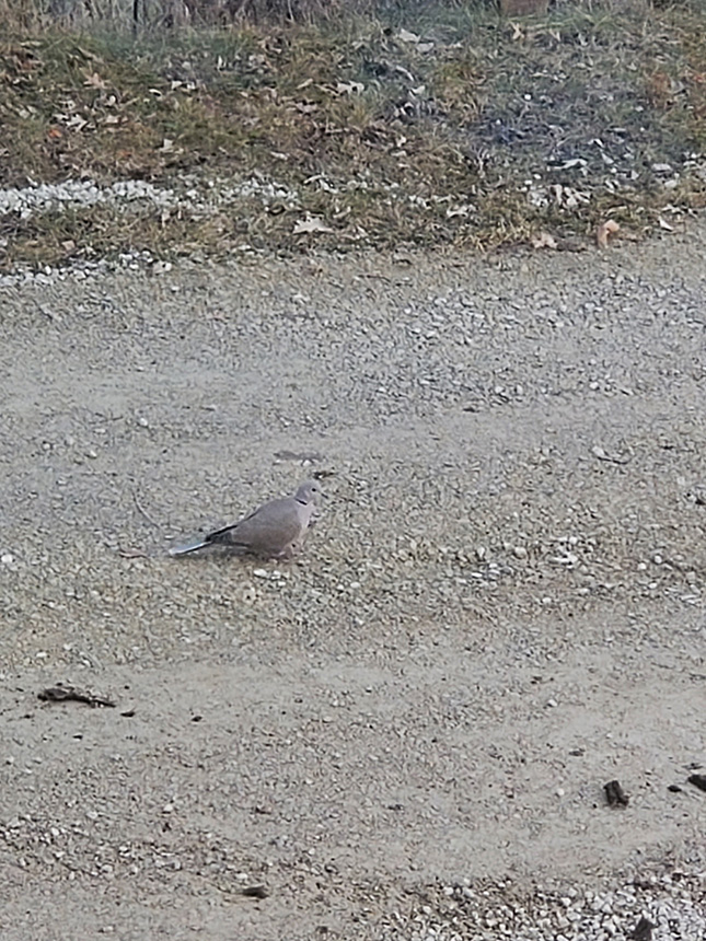 A pair of Eurasian Collared Dove's are nesting nearby and visiting the area under our bird feeders |