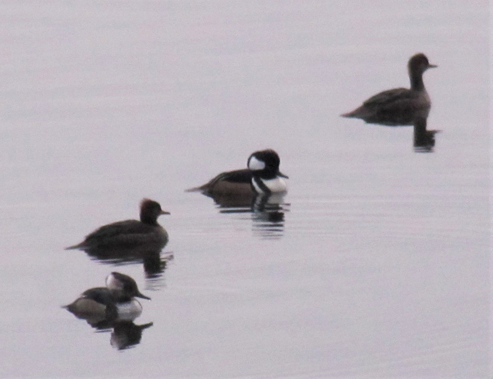 Wood ducks (male and female) and female Hooded Merganser with ducklings |