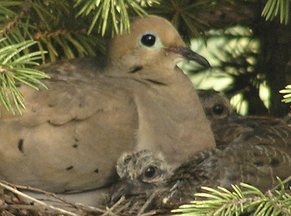 Mourning Dove (Columbidae: Zenaida macroura) Nest with Eggs |