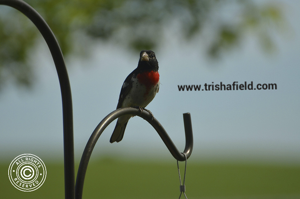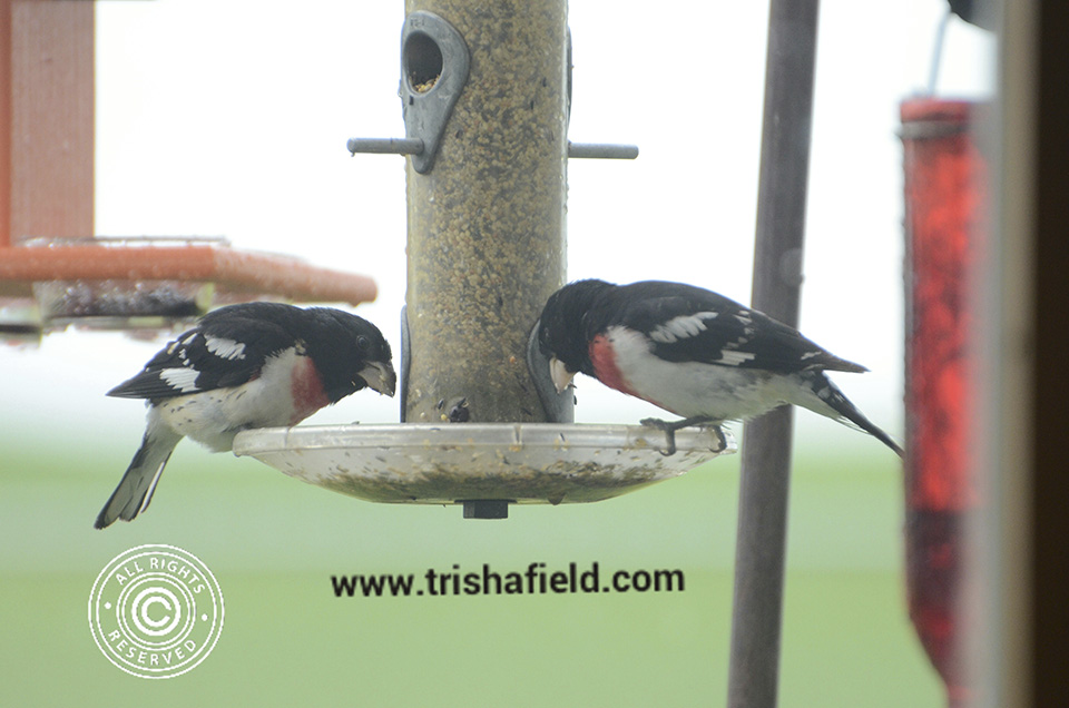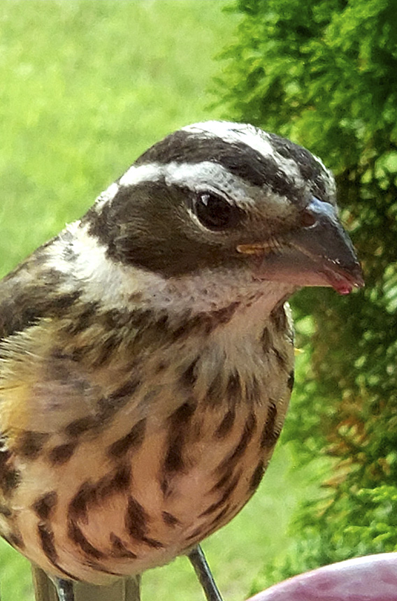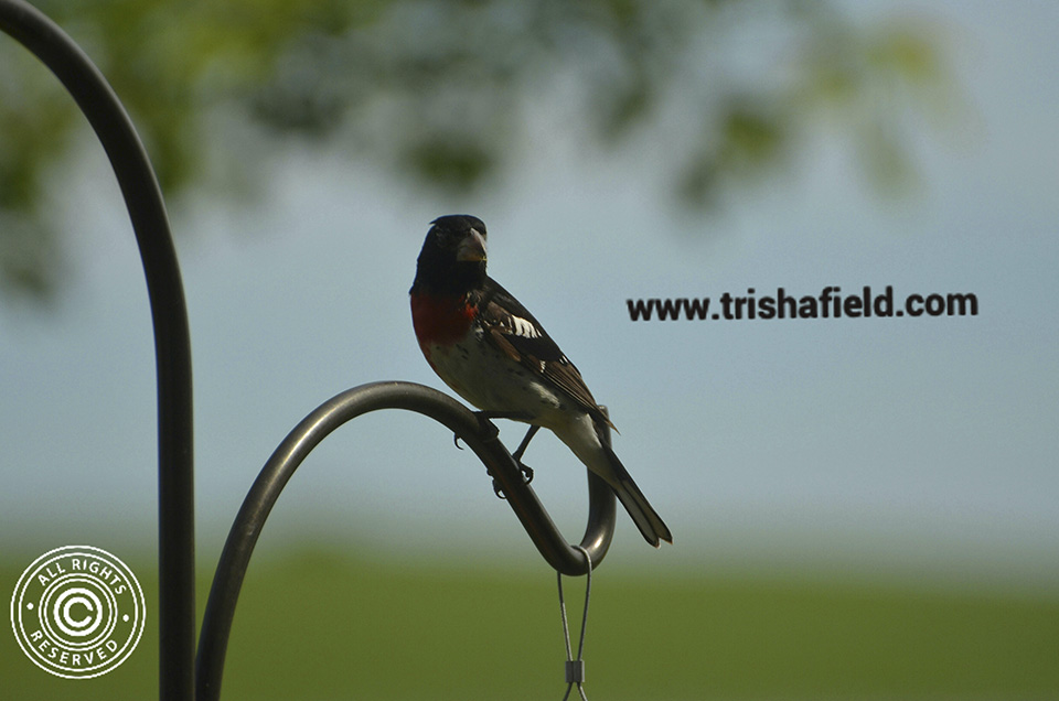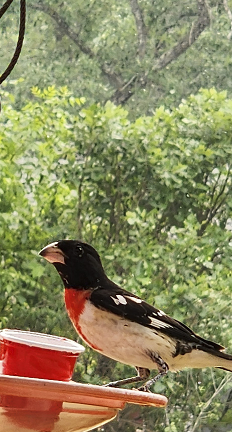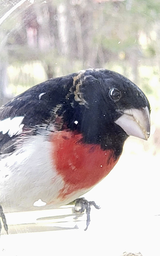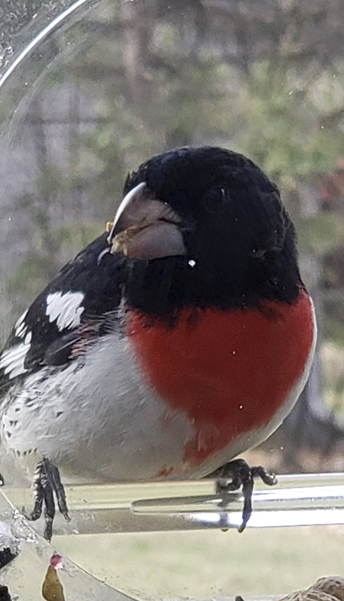 Beautiful male on my backyard feeder this morning. First spring I’ve had grosbeaks. Love them. |