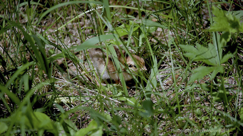 Location: near Twin Valley, Mn While out on a woodland trail near Twin Valley, Mn. I noticed a ruffed grouse that showed up suddenly near me acting kind of peculiar. She would make strange sounds wander into the brush then re-emerge sometimes ruffing up her feathers. As I looked a little closer I noticed she had some little baby ones. They were so small and when lying still extremely hard to notice or see. I noticed one walking off and then looked much closer to be sure I did not accidentally step on one. I spoke softly…Do not worry momma grouse I am not going to hurt your babies. She just kind of looked at me funny and seemed to calm down. I took a couple quick photos and quietly walk back in the other direction not to disturb their outing. Some of the little ones were resting right on the wide trail. Possibly even napping as small as they were. |