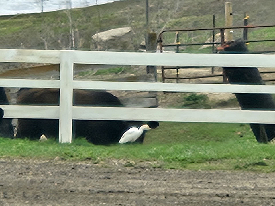 Location: cattle pasture with a small river running through 1 mile south of Edgerton, MN on Pipestone County Road 1 I noticed the bird as I was driving by because the cattle were actively investigating the bird. I turned around and came by again and the cattle had settled and the egret was standing in the long grass. |