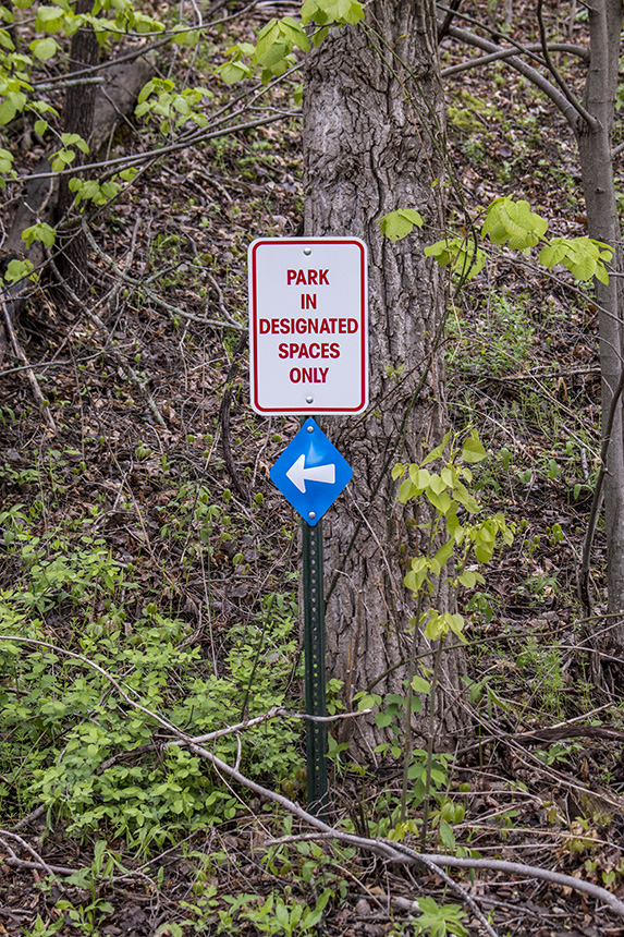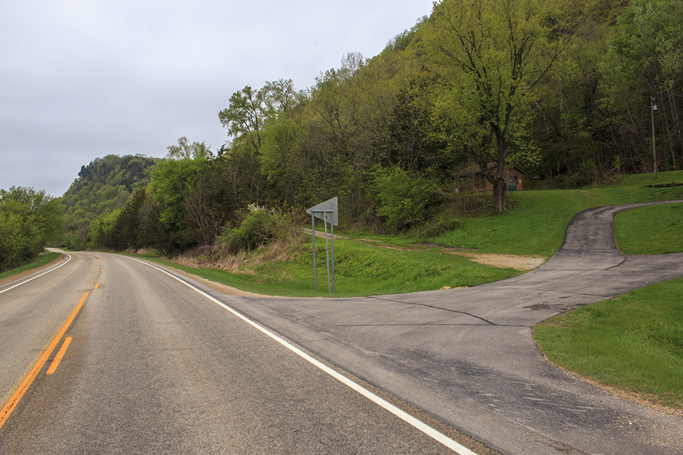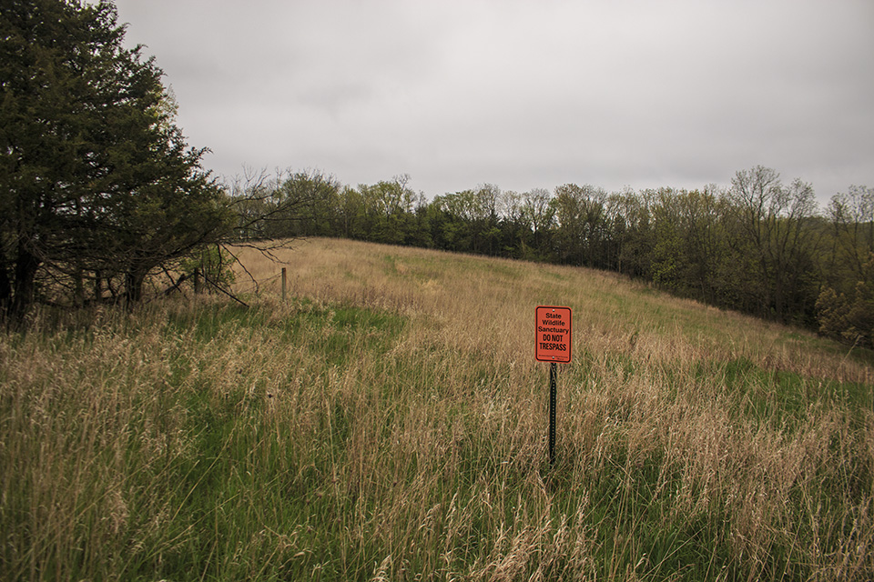 There are no maintained hiking trails. An access road leads from the parking area (walk around the gate) 0.67 miles to the top of the bluff. A footpath follows the cleared fields on the bluff top to the northern boundary. Another footpath leads east from there to an overlook at the northeast corner of the SNA, a dizzying 400 feet above the road below. The Gopherland Trail snowmobile trail passes through the sanctuary portion of the SNA and may be used by snowmobiles when covered with snow. |