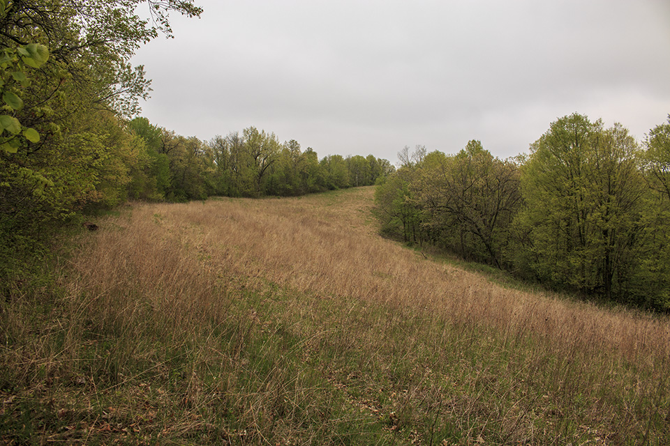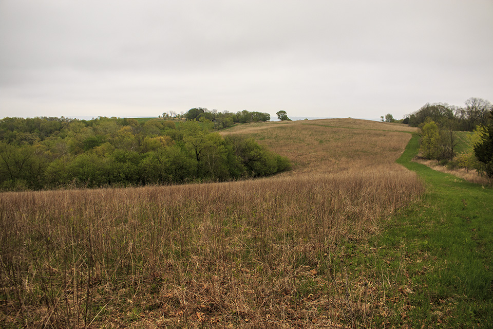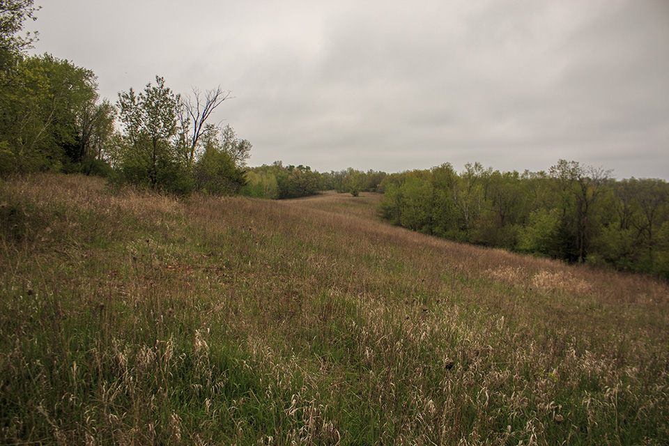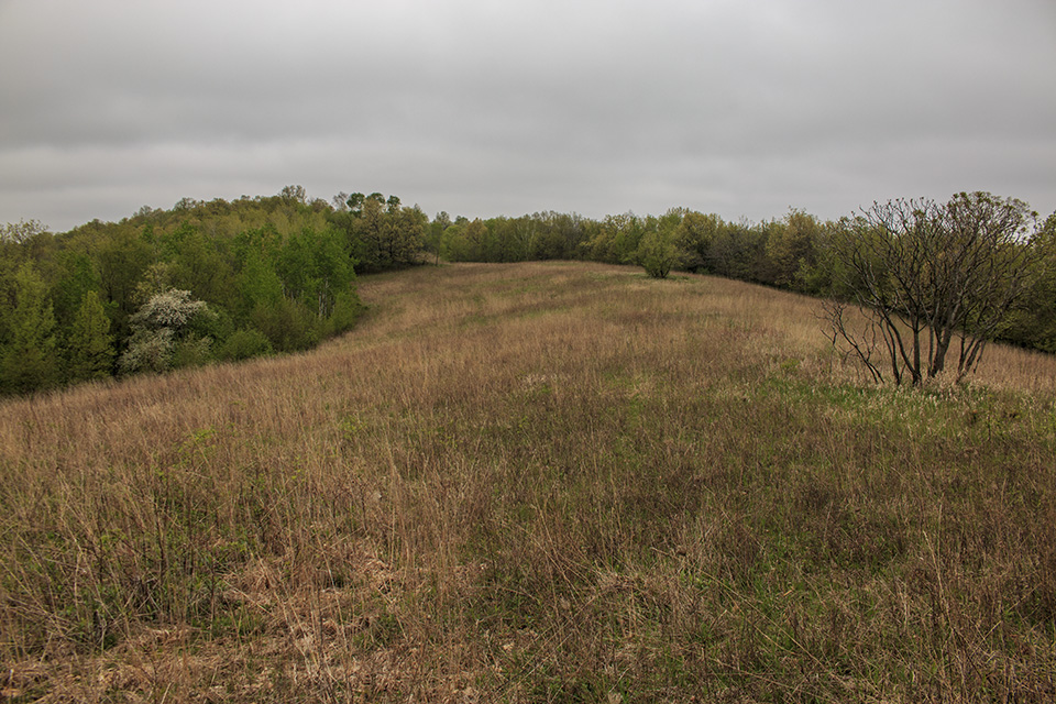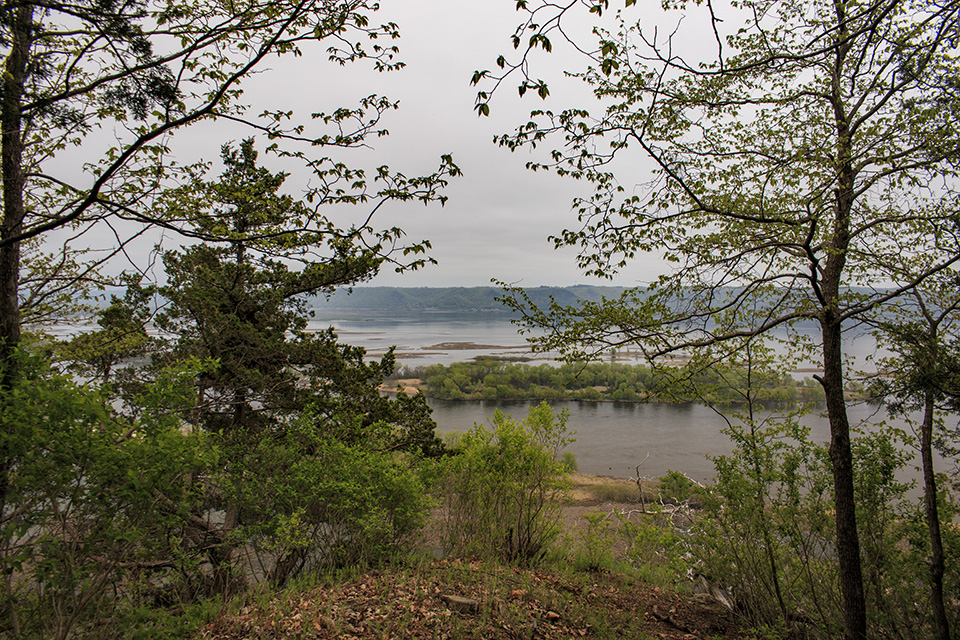 Oak-hickory woodlands, oak-basswood forest, steep bluffs, old fields, and overlook. |