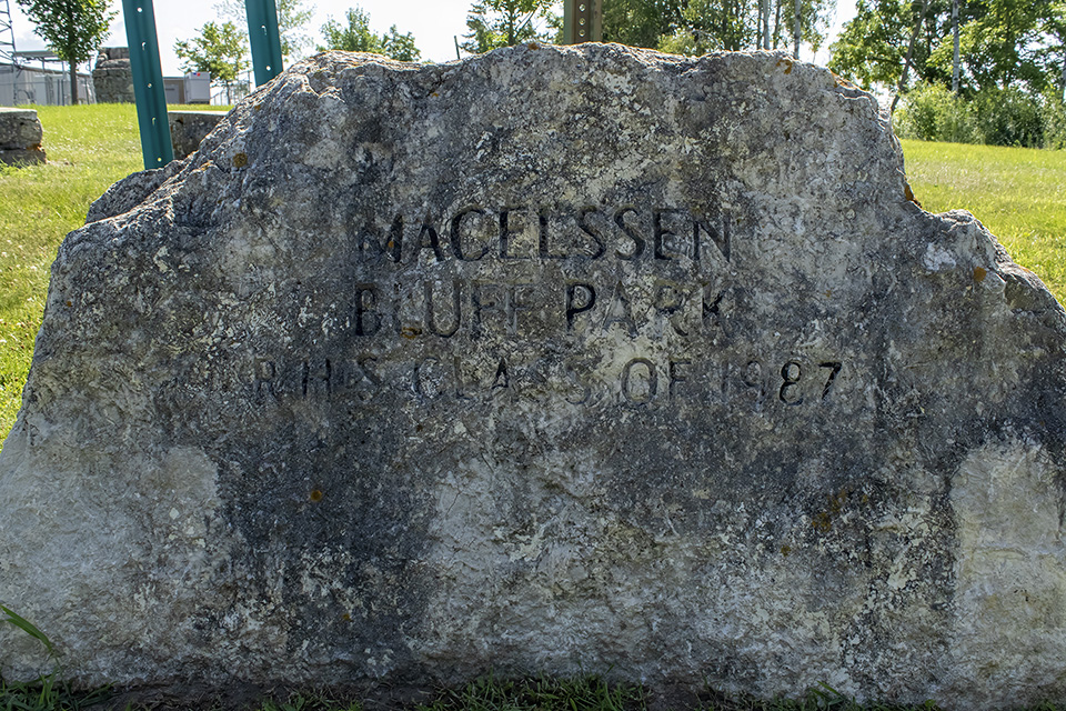 Magelssen Bluff Park inscribed rock donated by Rushford class of 1987 |