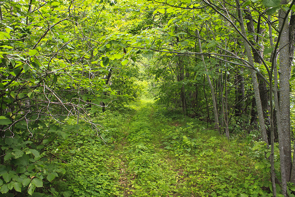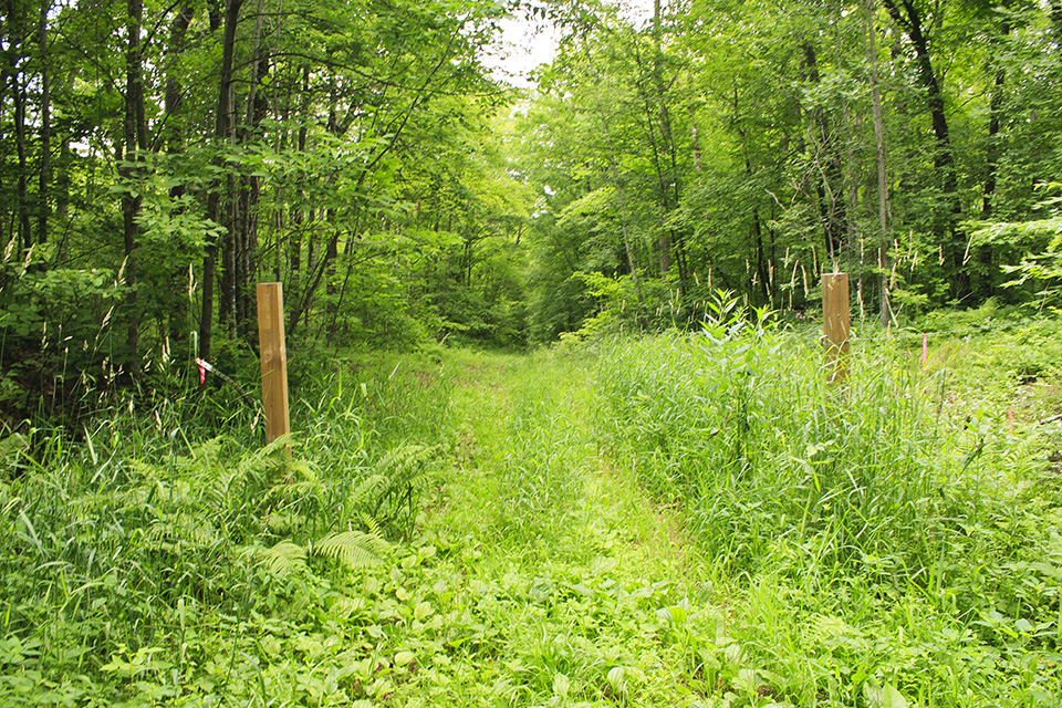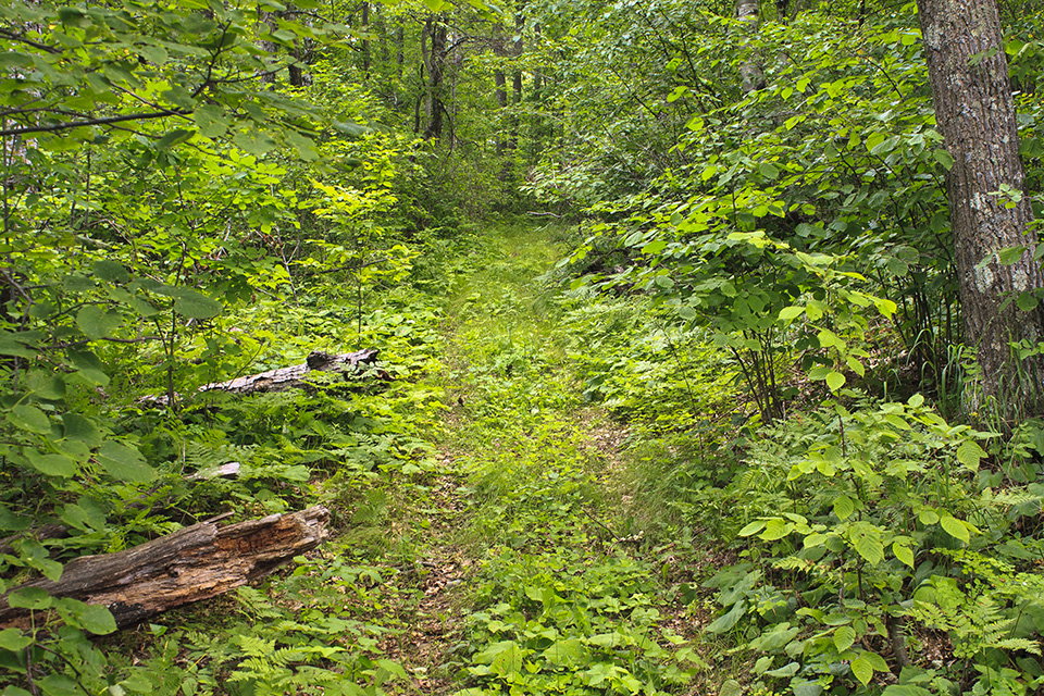 South Tower Road, an unmaintained road, passes through the site from north to south. A hiking trail passes through the site from west to east. It ends abruptly at a channel near the northeast shore of Sunfish Lake. |