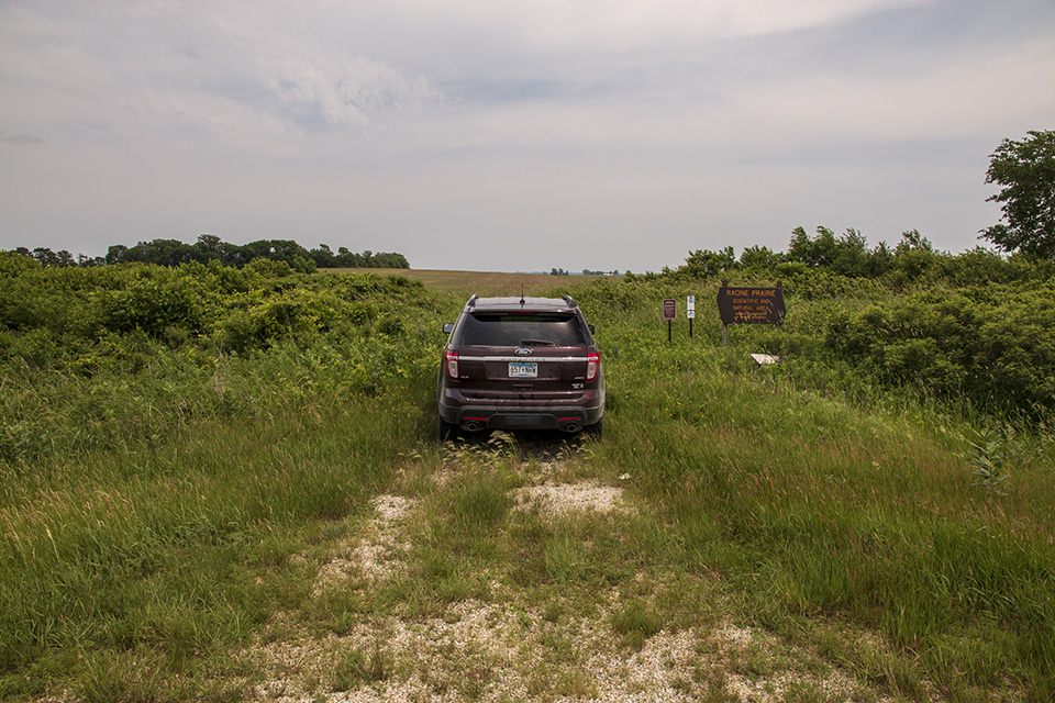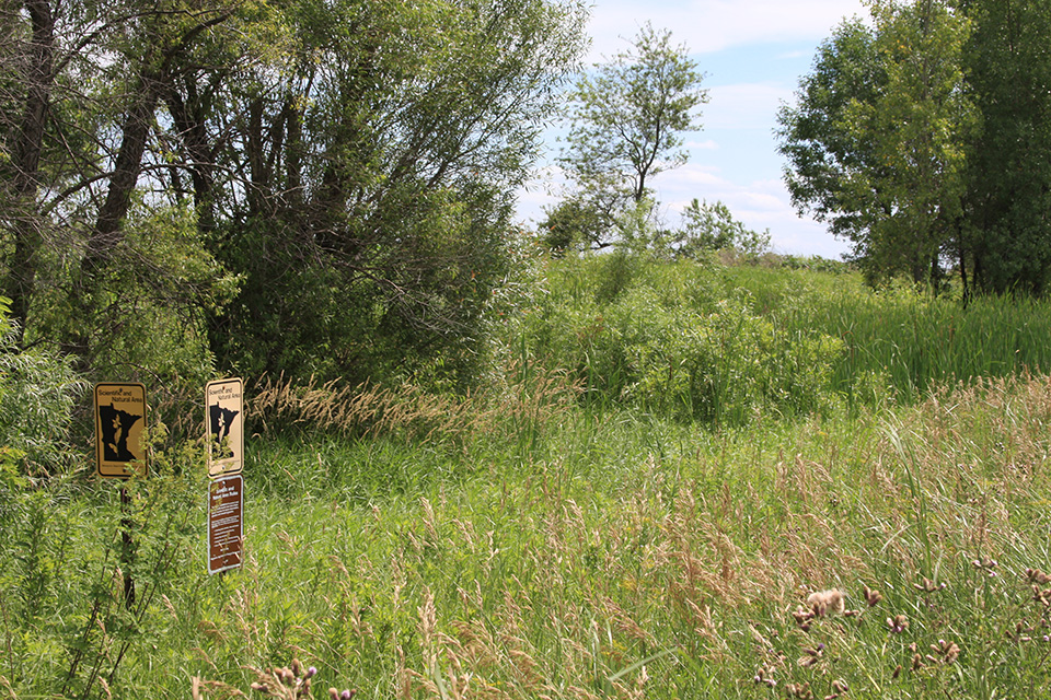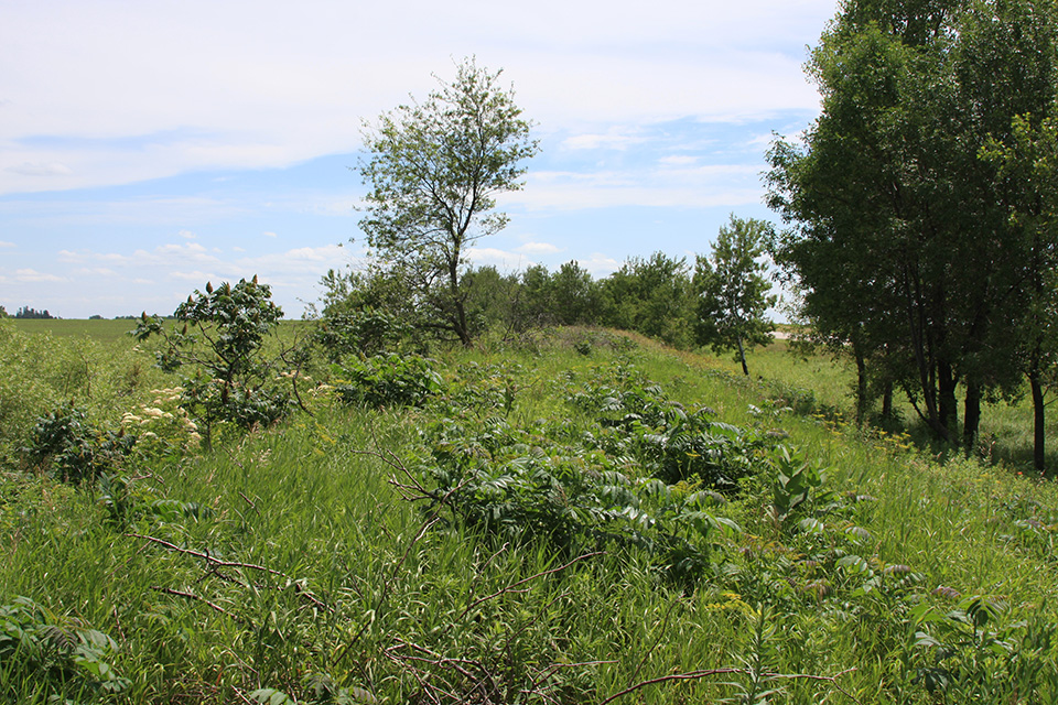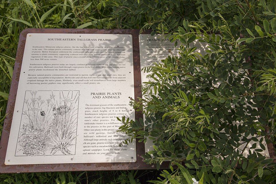 Lack of periodic fire has allowed woody species to overtake what was once prairie. In some areas smooth sumac creates a solid overstory five to eight feet above the ground. |