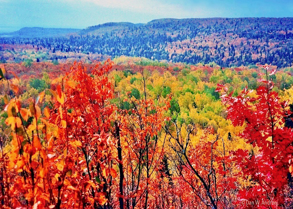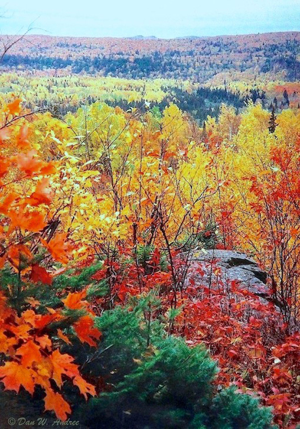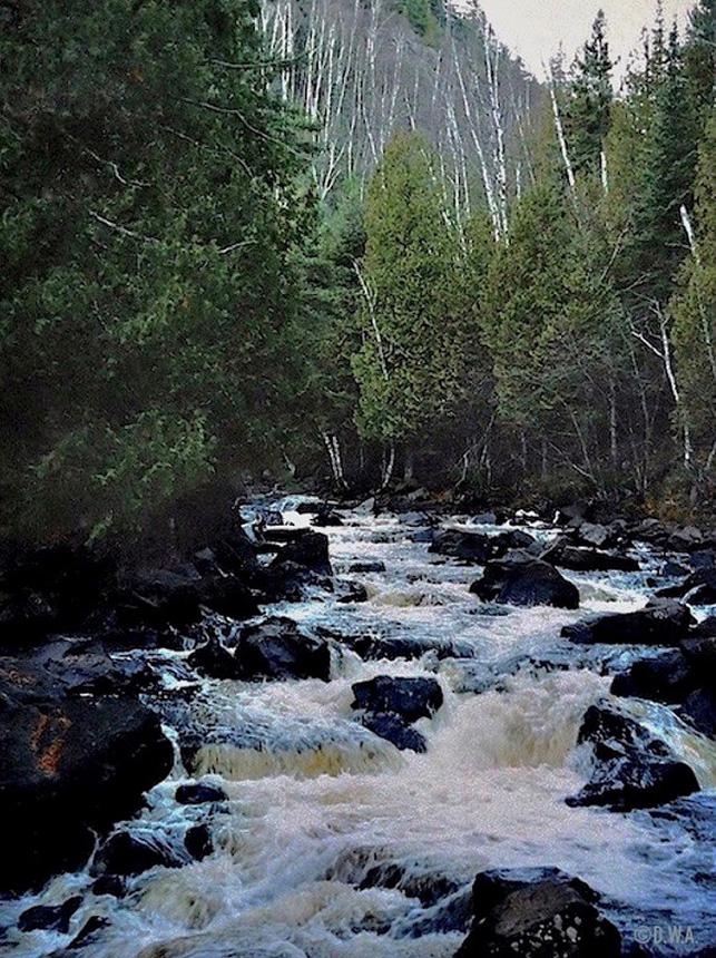 The far left side distant hill is out of the state park and the previous John Driscoll owned it and that land is still in the Driscoll family. I inquired several years back about logging on that hill. He explained of dying birch etc. some other trees and stated a dying forest wasn’t good for anyone. So they logged and replanted trees etc. He did write me a nice letter explaining and also said next time I was up there to stop by the caretaker and I could go look at the falls etc. down by the lake. That was quite a while back but I did go and its a beautiful area right down by the lake too. They take good care of that area. Anyway interesting and very diverse forests etc. in the north shore region etc. |