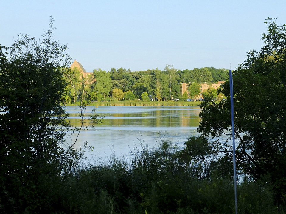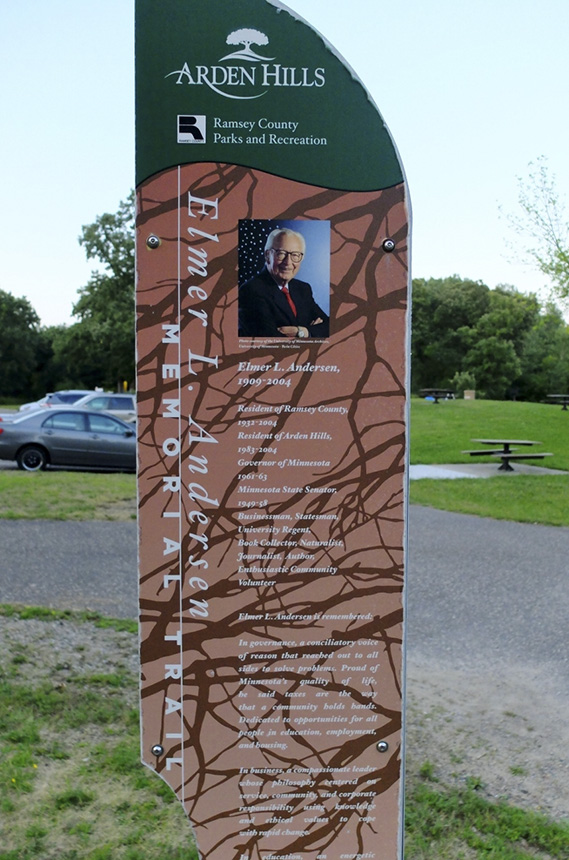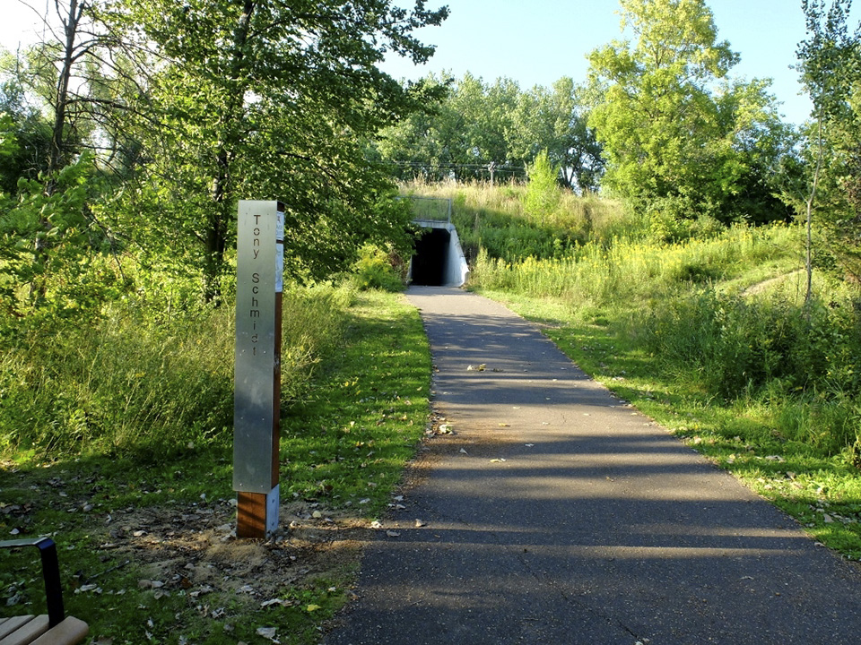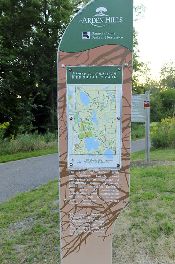 Tony Schmidt Regional Park is a Ramsey County park located in Arden Hills, stretching from County Road E and Lake Johanna Boulevard along the north shore of Lake Johanna to Mounds View High School and the 35W-694 cloverleaf interchange. It is largely a series of wetlands connected by streams and open bodies of water, nestled in among woodsy residential neighborhoods and other city parks, like Charles Perry Park and Chatham Open Area. The park is basically in three sections – an active railway cuts across the southern portion, and County Road E2 cuts across the north portion. There are picnic grounds and shelters, playgrounds, a play field with backstop (Perry Park has three ball diamonds), and a boat launch, swimming beach, and fishing pier on Lake Johanna. A paved walking trail heads north from the main parking area, going through a tunnel under the railway and leading to an at-grade crossing at County Road E2. There are also several turf/dirt trails that lead off at different points; one trail leads over to Snelling Avenue and Lake Valentine. The campuses of two universities can be seen from the park: Bethel University across Lake Valentine, and the University of Northwestern-St Paul across Lake Johanna. A 2011 article by Jessica Bakeman in the Star Tribune also describes how residents around Lake Johanna take great care to keep the lake clean and free of invasive species like Eurasian milfoil (http://strib.mn/17kn2Zj). Near the beginning of the paved trail, a signpost talks about how a segment of the Arden Hills trail system was dedicated to the memory of former Governor Elmer L. Andersen. All in all, it is a well-maintained park, offering something for all comers. https://www.cityofardenhills.org/208/Trails Charles Perry was the first white settler in Mounds View Township (what is now Arden Hills) in 1850: https://www.parkbugle.org/first-como-settler-didnt-stay-long/ — Kirk Nelson |