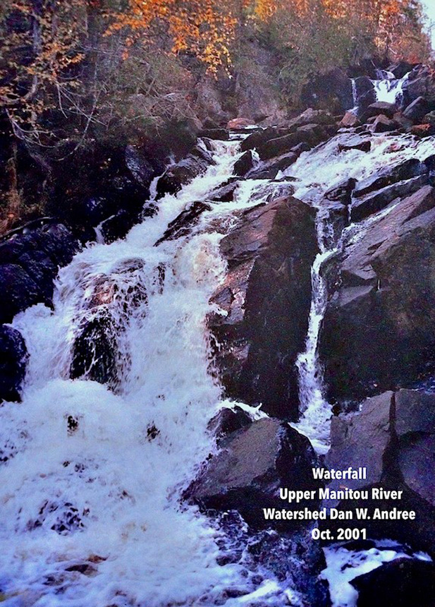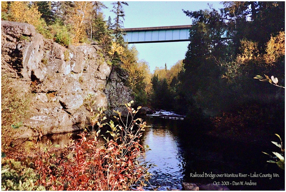 Uppermost Falls Manitou River... This is that falls upriver from the Manitou River Railroad Bridge. … The river was at low water level and I think a little steeper than the Manitou River Cascades back in the state park. I only hiked to this falls one time. I can imagine at higher water levels it would be quite a gusher. |