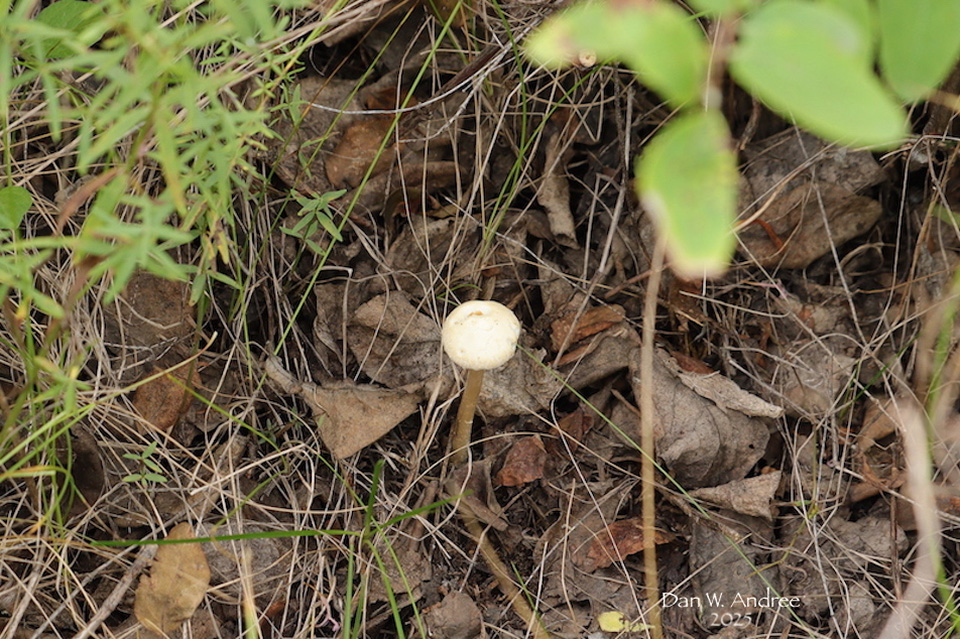 Small Light Tannish White Mushroom.. This one was small with a longer stem and hidden beneath some wolf berry and vegetation July 2025. Here are several images showing different areas. |