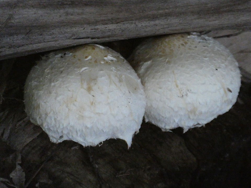 The flesh is thick, firm, and white. It does not change color when sliced. It is edible but tough and the taste is disagreeable.