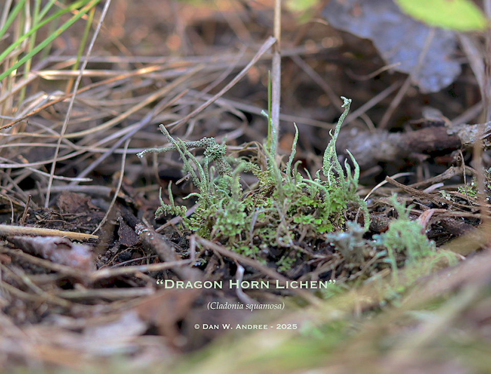 Another Dragon Horn... Here is another dragon horn lichen I came across. I like when there has been adequate moisture they seem to have a bit brighter color than when it has been hot and dry etc. conditions. Real interesting growth formations. This one kind a looks like it has a long necked creature on the right side with a small head and pointed ears etc. If one uses their imagination. 😊 |