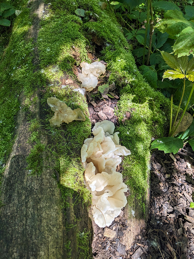 On Tuesday, the group I hike with, went to Magelssen Bluff Park in Rushford. There were lots of mushrooms and fungi along the trail. The park uses downed trees to line the trails as well as wood chips on the trail itself to help curb erosion. They do a wonderful job. All that decaying wood makes excellent food for mushrooms/fungi. One of the fungi that I photographed looked a lot like White Jelly Fungus to me, but another iNaturalist poster said I was wrong and called it Snow Fungus. I noticed that you didn’t have Snow Fungus pictures, so I am sending you mine. |