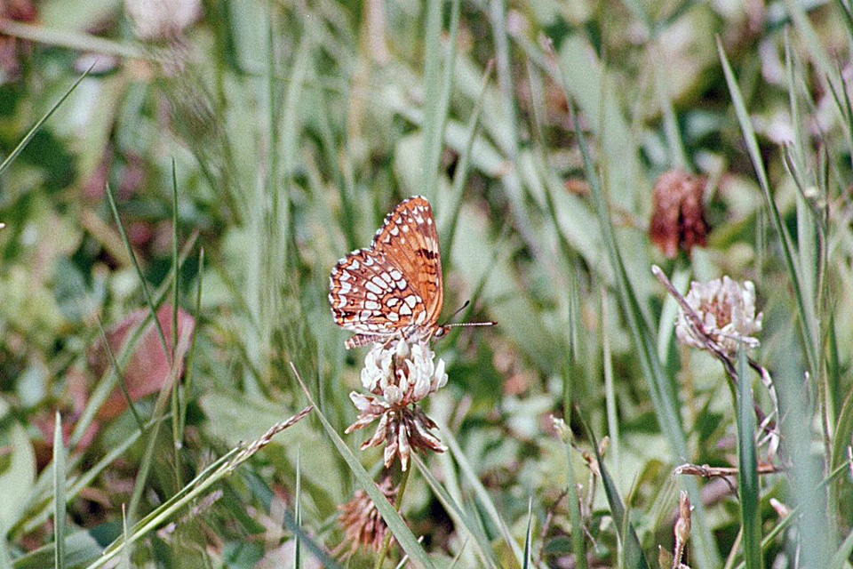 Harris checkerspot feeding on clover flower Meena Haribal |