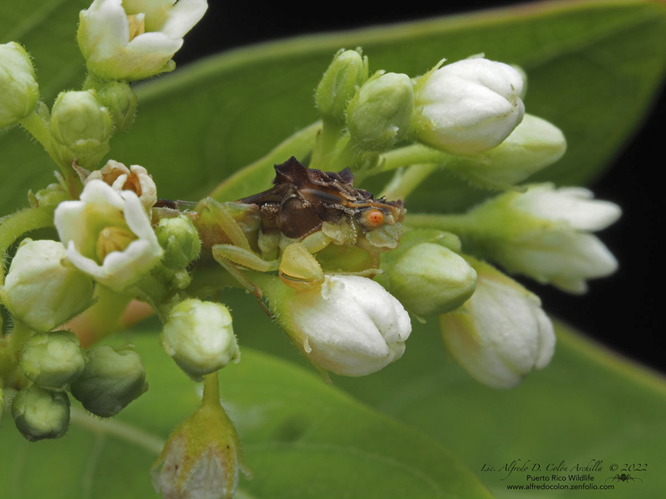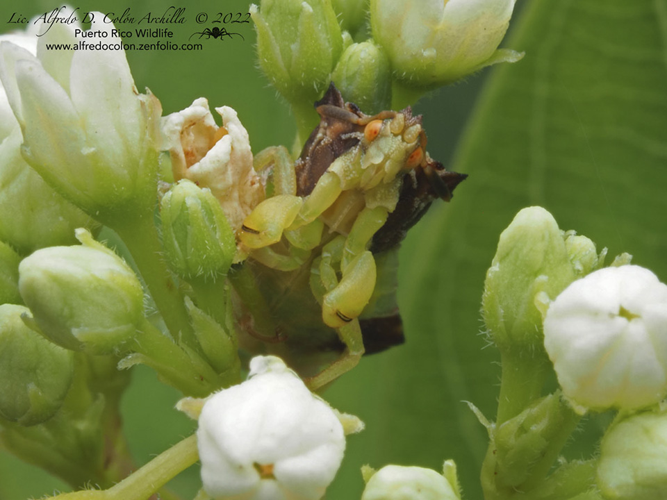 Adults prefer yellow or blue flowers where their camouflage is most effective. They may have the ability to change their colors somewhat in response to their environment. They can capture prey up to ten times their own size. |