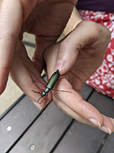 GREEN BLISTER BEETLE mating pairs compete for top spot (Lytta sayi) |