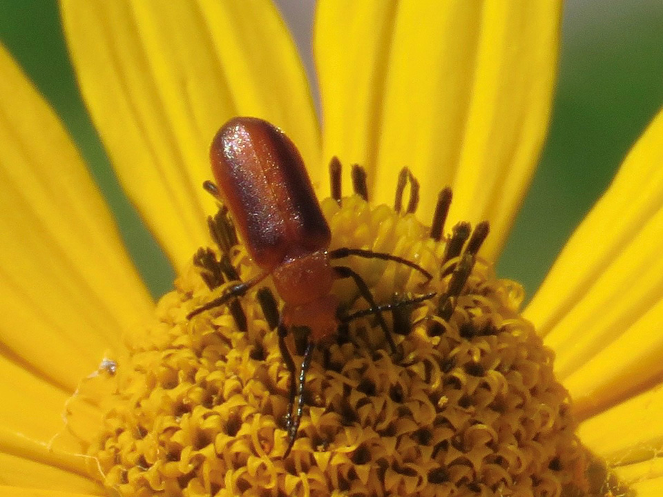 Zonitis vittigera is known by the common name orange blister beetle, but another beetle, Nemognatha piazata, is also known by that common name. Zonitis vittigera is sometimes given the common name brown blister beetle. To avoid confusion, that name will be used here. |