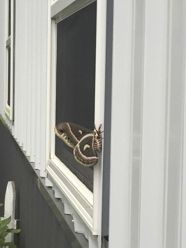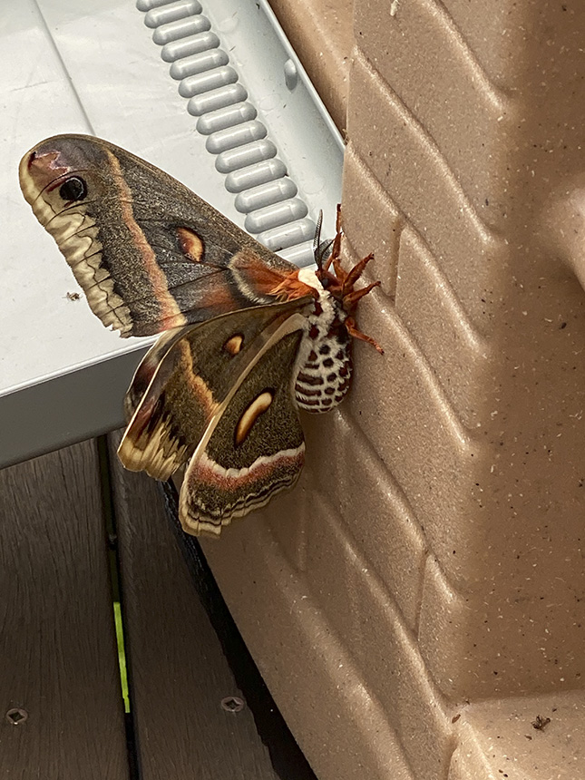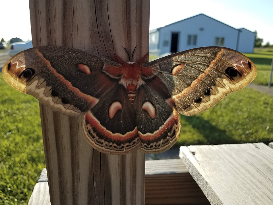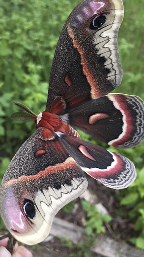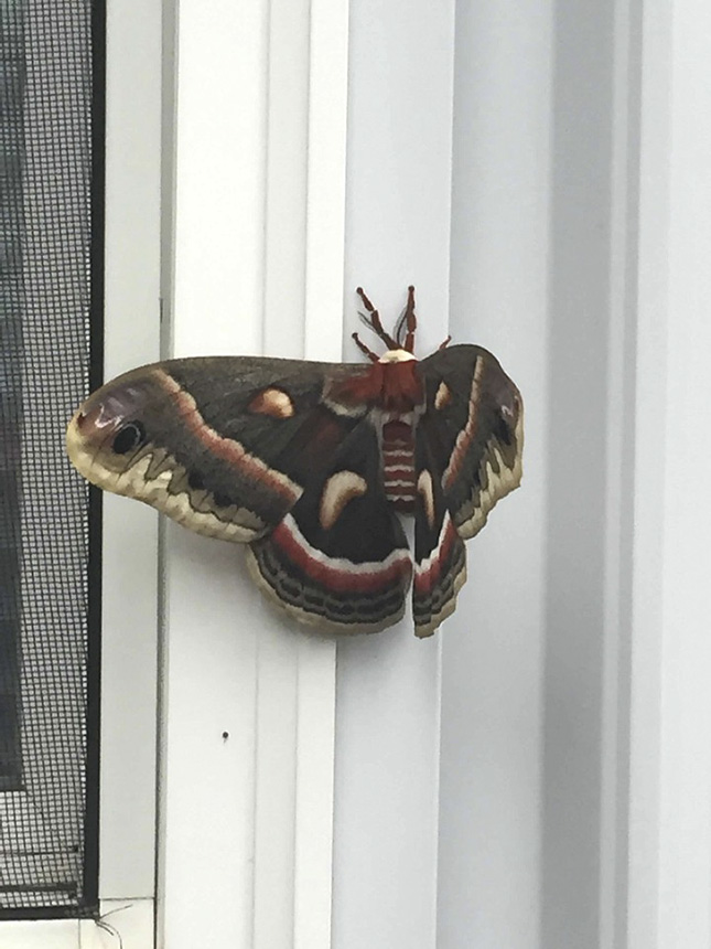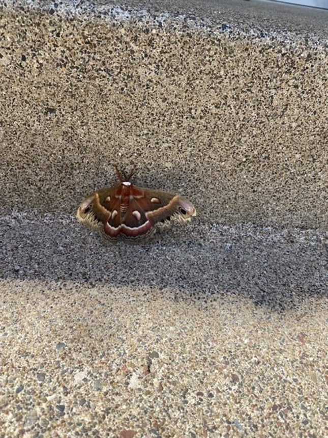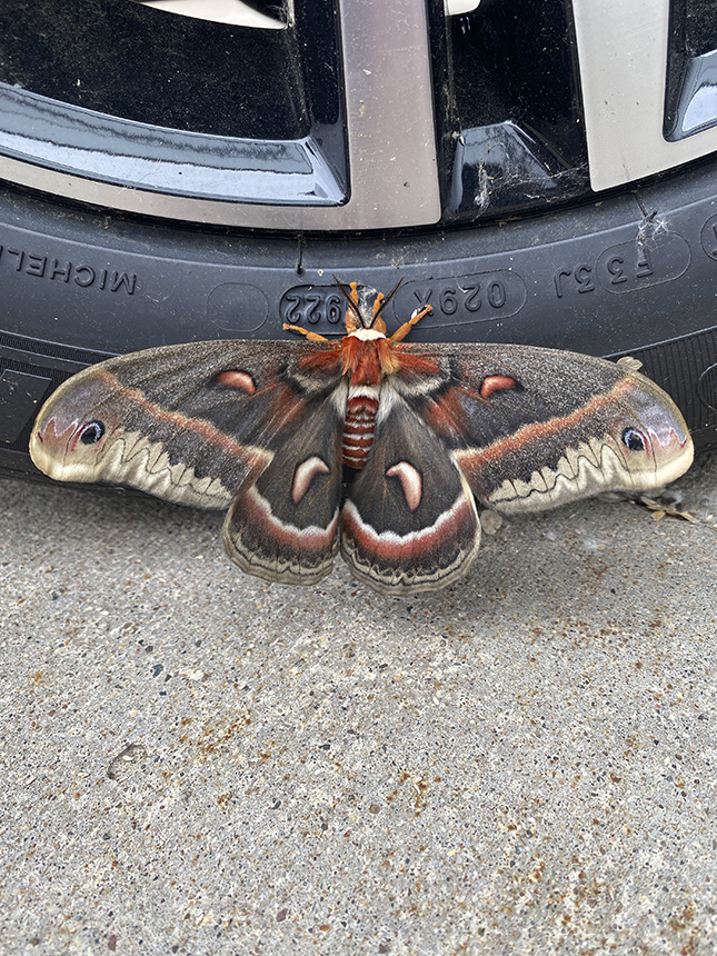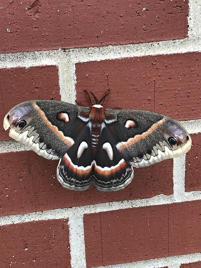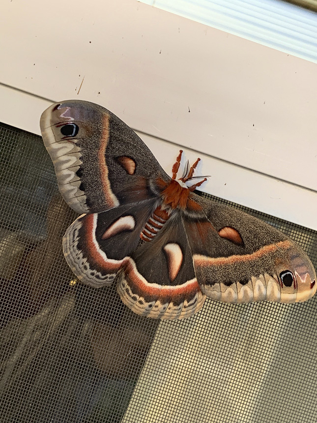 Captured Cecropia Moth and relocated it to a safer place.... This past week I was at a convenience store fueling up and a woman who worked there came over to me all excited and asked me what this was? She said if flew out from underneath something and scared her. I told her it is just a big moth and they are harmless. She asked what kind is it? I told her it’s kind of an unusual name it’s a Cecropia. I told her they usually are out at night and it's really kind of out of its element. |