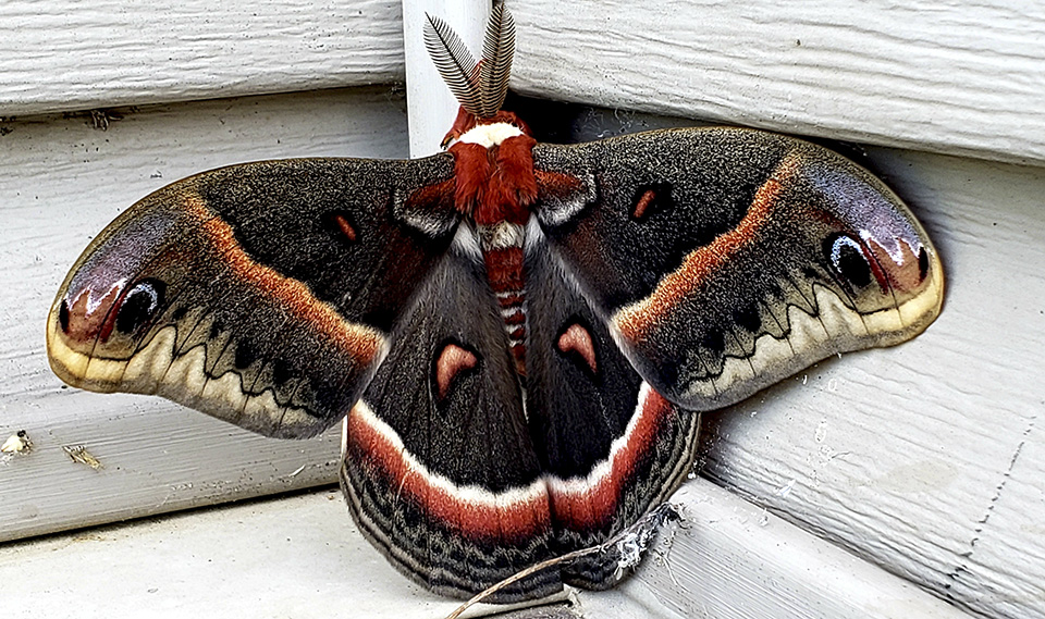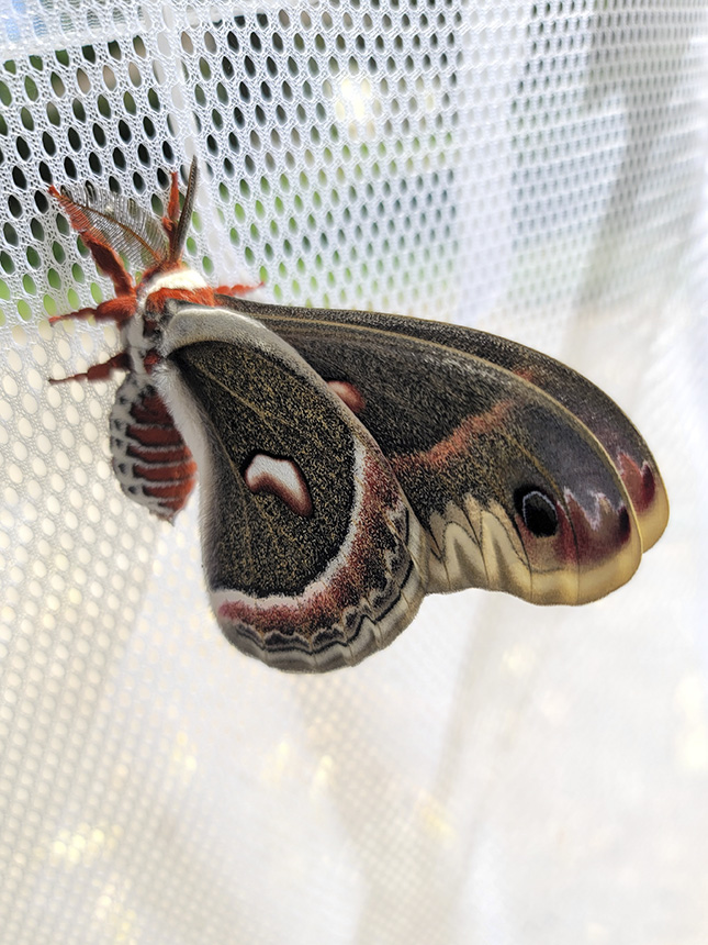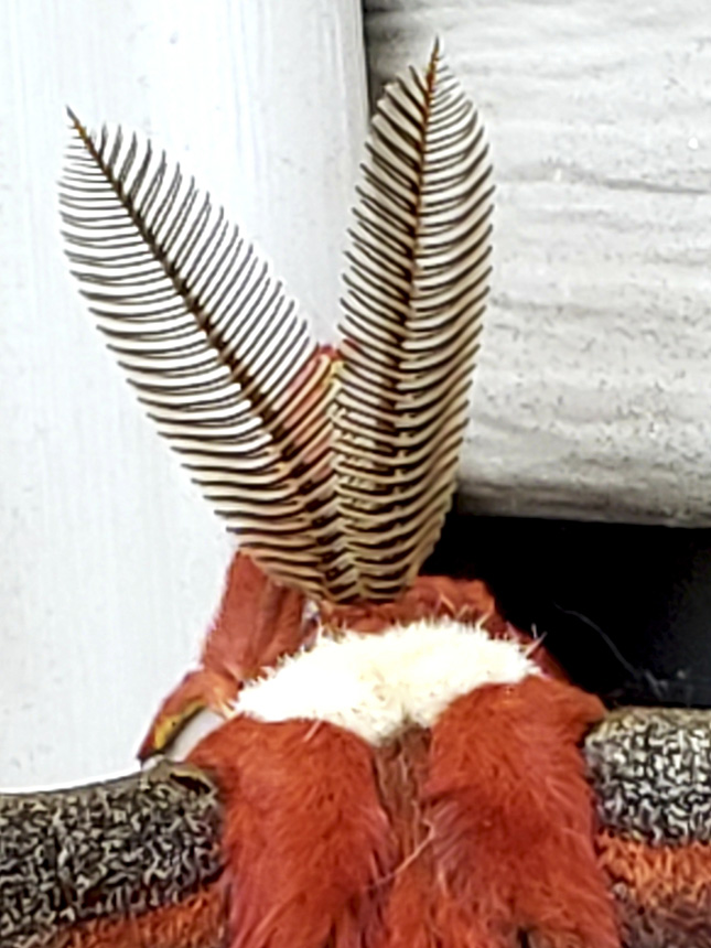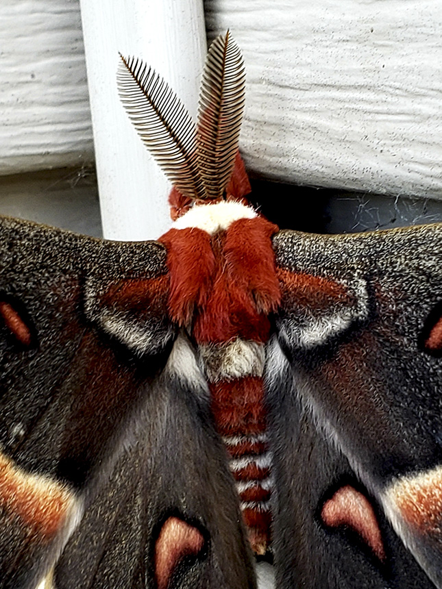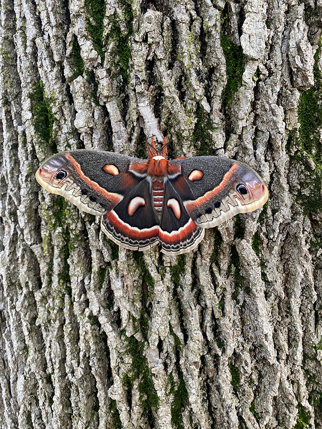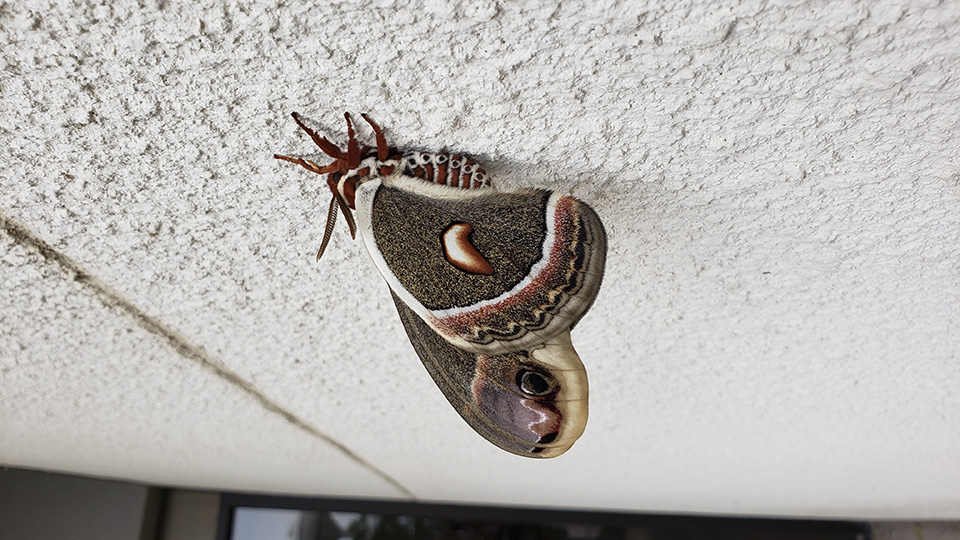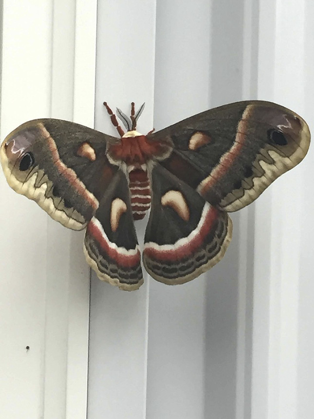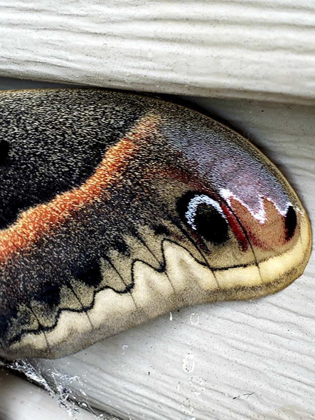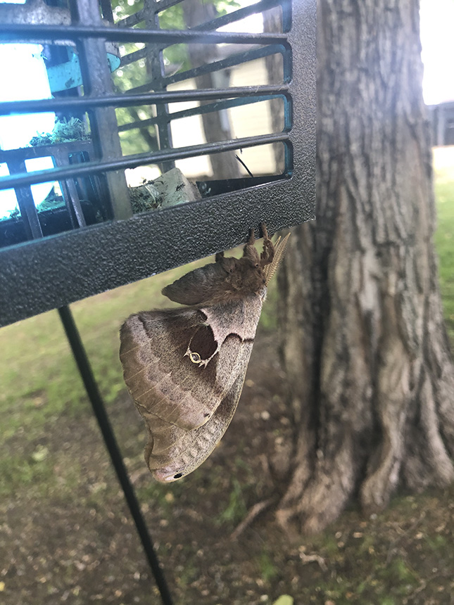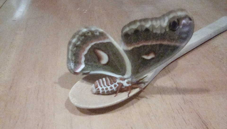 Captured Cecropia Moth and relocated it to a safer place.... This past week I was at a convenience store fueling up and a woman who worked there came over to me all excited and asked me what this was? She said if flew out from underneath something and scared her. I told her it is just a big moth and they are harmless. She asked what kind is it? I told her it’s kind of an unusual name it’s a Cecropia. I told her they usually are out at night and it's really kind of out of its element. |