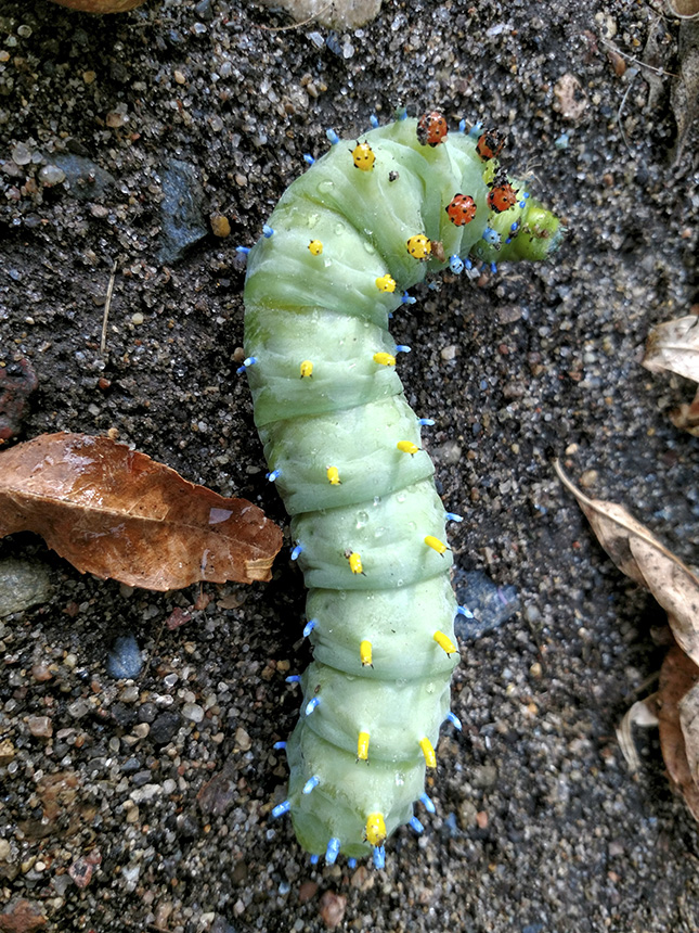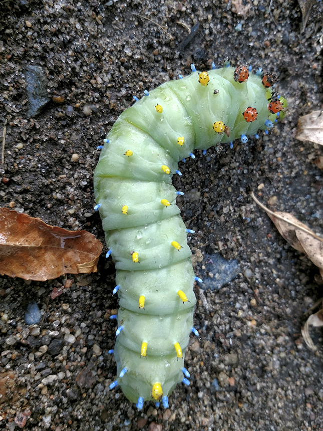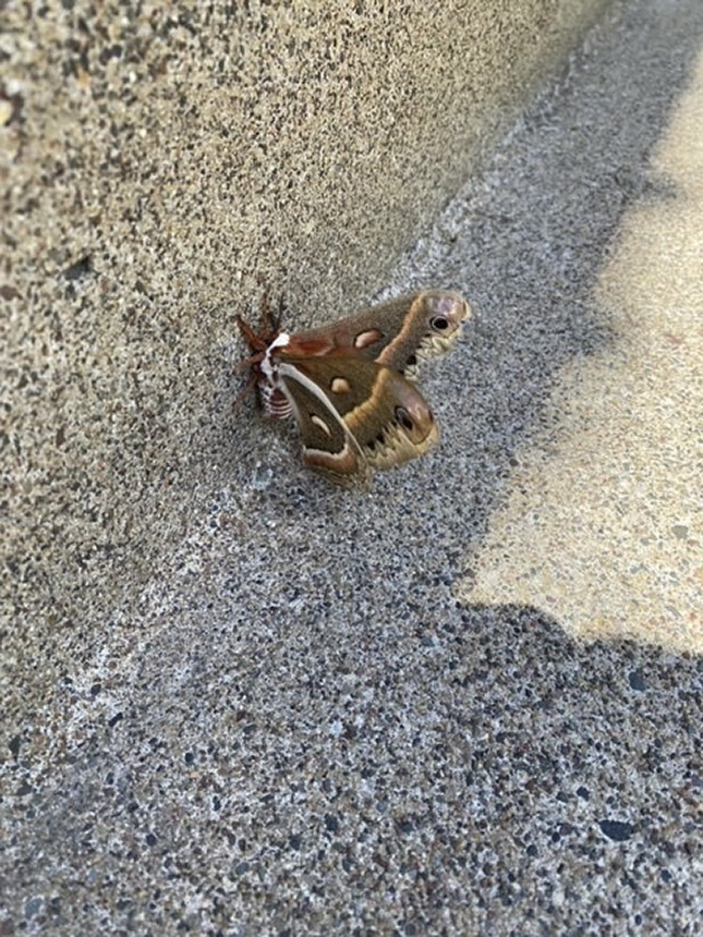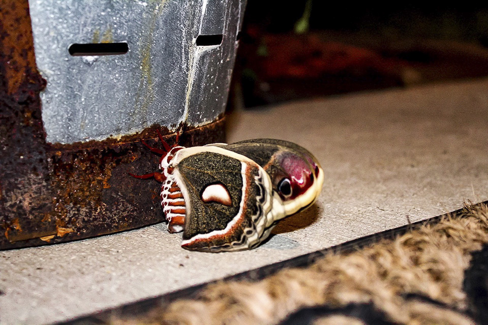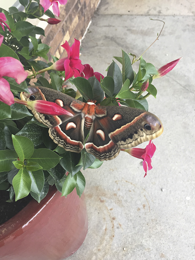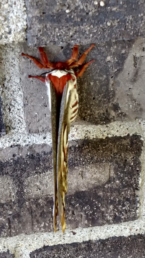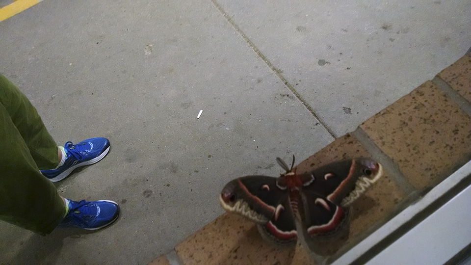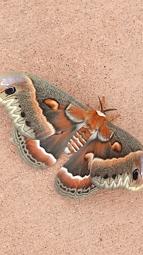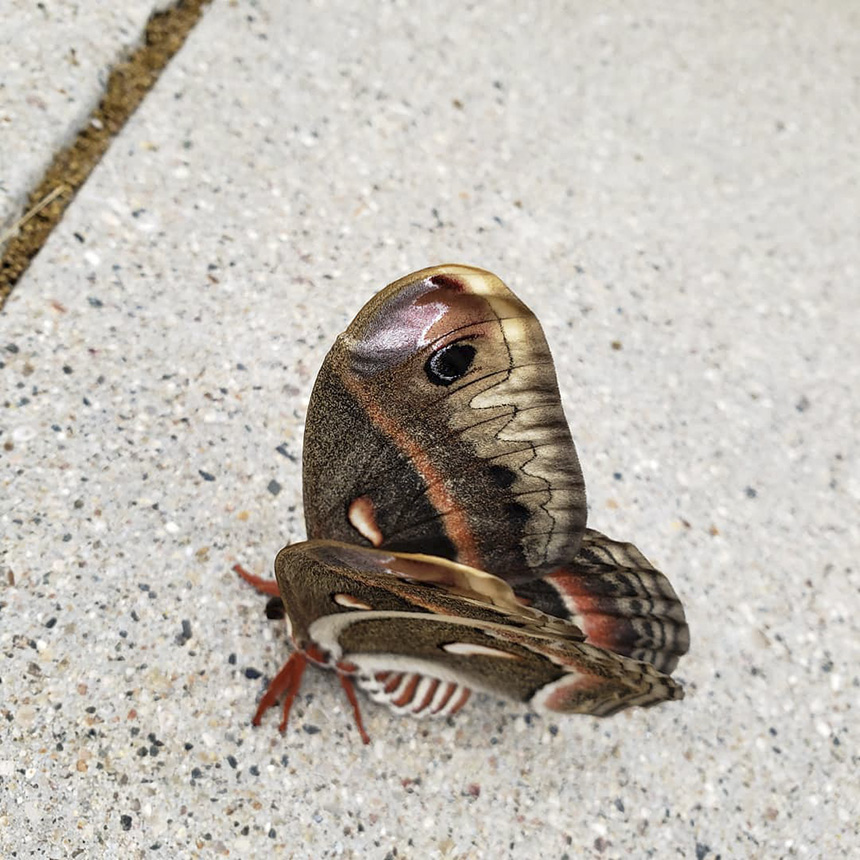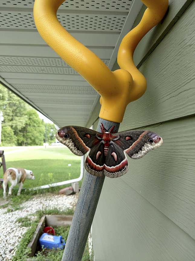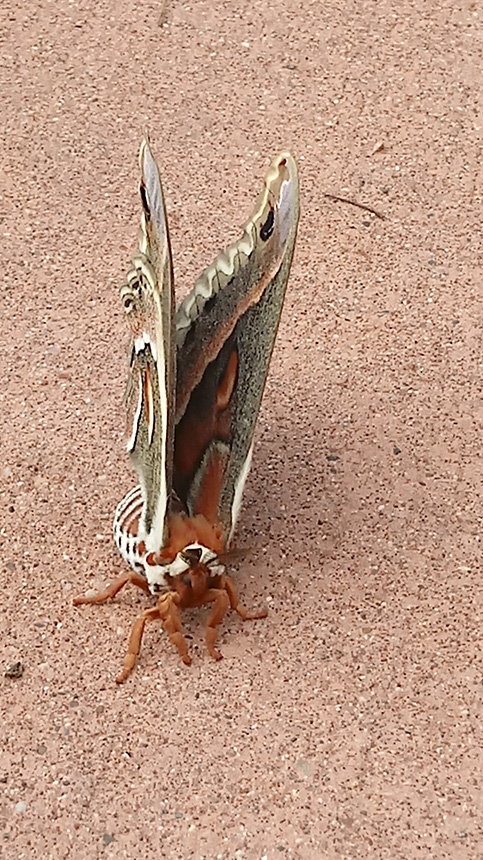 I almost stepped on him this morning when I walked outside on my porch he is still alive I picked him up and moved him out of the way so he didn’t get hurt or killed by accident. I love moths like this. |
