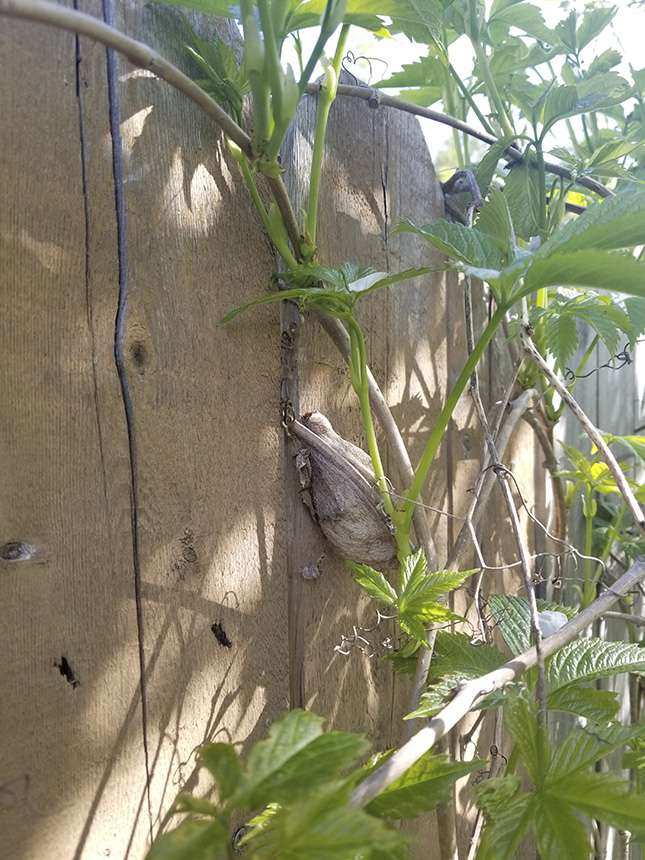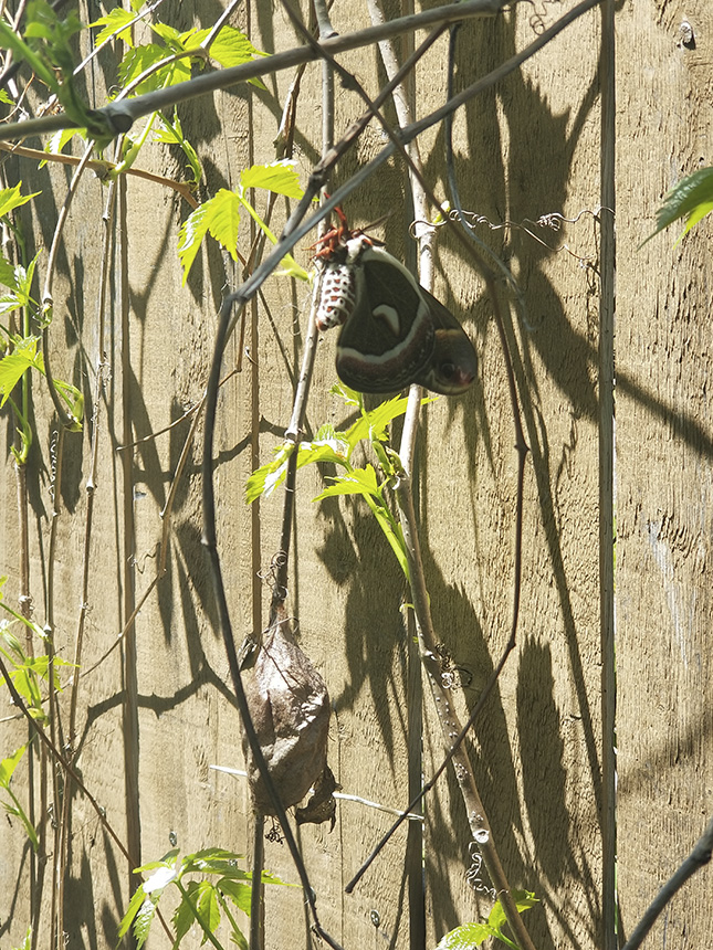 I found a cecropia moth cocoon while cleaning up dead raspberry vines on May 3rd, … |
