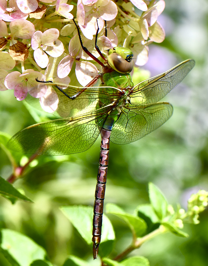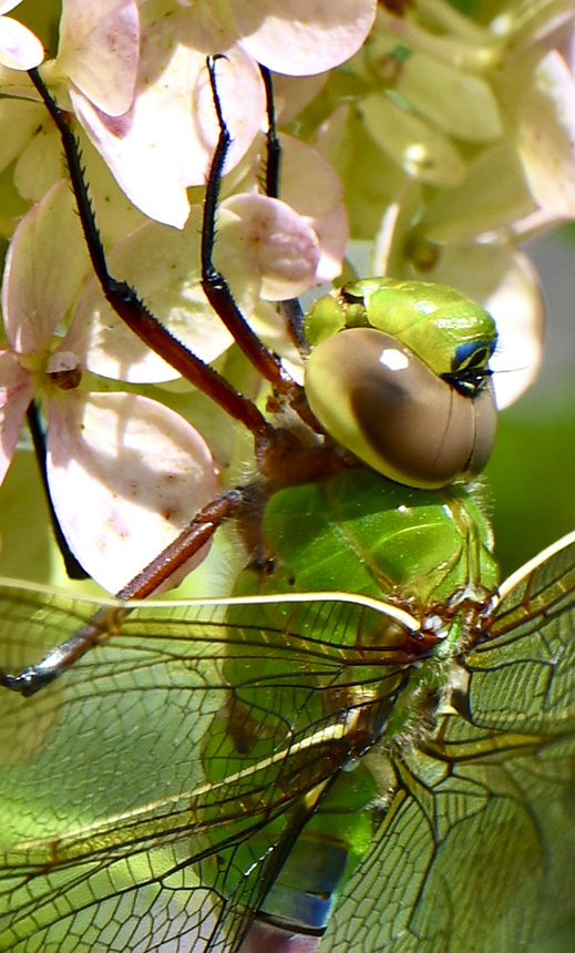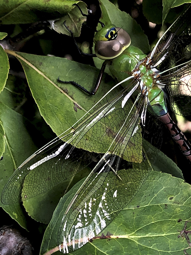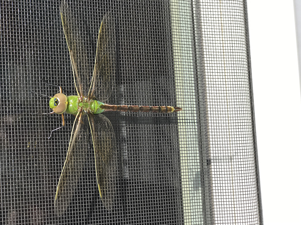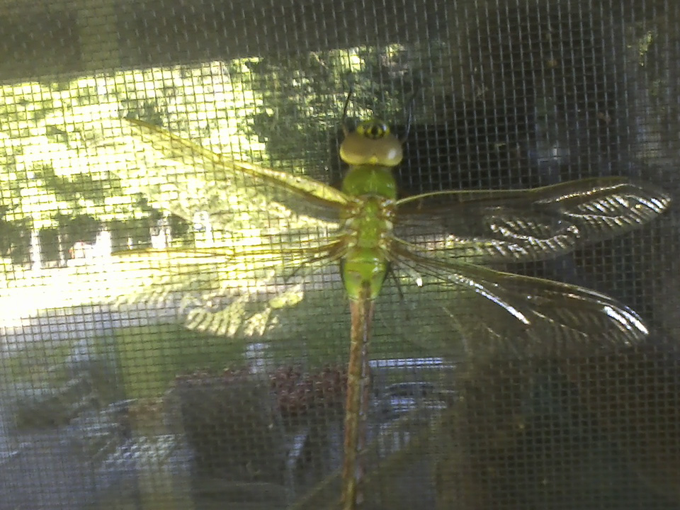 Yesterday I woke up to this beautiful dragonfly on my screen and it remained there till dark. Looking it up, I am sure it is a Green Darner. |