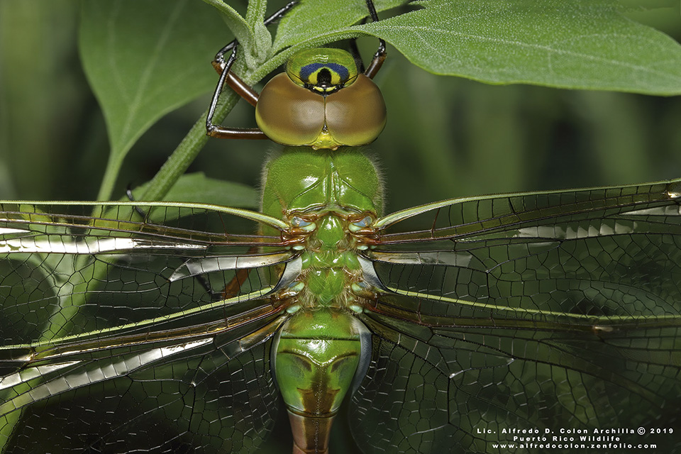Green Darner Dragonfly (Aeschnidae: Anax junius) Dorsal Close-up |