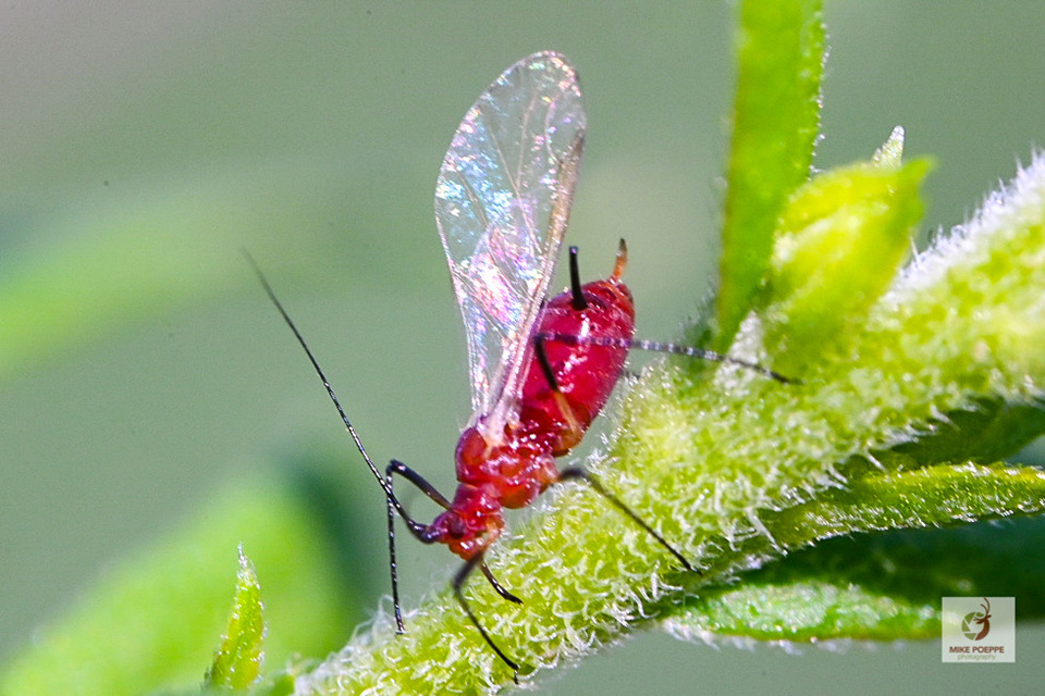 Dusky-tailed sunflower aphid is a medium-sized aphid. It occurs in the United States from Maine to Virginia, west to Minnesota and Illinois, with scattered records south to Florida and west to California. It occurs in southern Canada from Quebec to Saskatchewan. Adults and nymphs feed on the juices of stems, leaves, and flowers. They have been recorded feeding on hairy sunflower (Helianthus hirsutus) and rough oxeye (Heliopsis helianthoides var. scabra). Adults are 7⁄64″ to 9⁄64″ (2.7 to 3.4 mm) in length. The body is red to reddish brown, soft, and somewhat pear-shaped. There are no small rounded bumps (tubercles) on the sides of the abdomen. There is a pair of elongated, finger-like processes (cornicles) near the end of the abdomen. The cornicles are dark and they have a network of lines on the outer half. The tail-like appendage (cauda) is mostly pale, but it is dark (dusky) just at its tip. This is the feature that gives the species its common name. The head is small. There are two well-developed lumps (antennal tubercles), each of which bears a single antenna. The tubercles diverge outwards and their sides are smooth. The antennae have six segments and are about as long as the body. The third segment has 5 to 14 sensory patches (secondary rhinaria) and has 1⁄64″ to 5⁄256″ (.04 to .05 mm) long hairs. The beak-like projection of mouthparts (rostrum) is long, reaching to or beyond the bases of the rear pair of legs. The terminal segment of the rostrum is 0.75 to 0.95 times as long as the base of the terminal antennal segment. The legs are black and pale. |