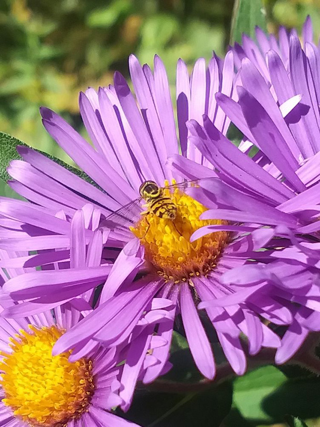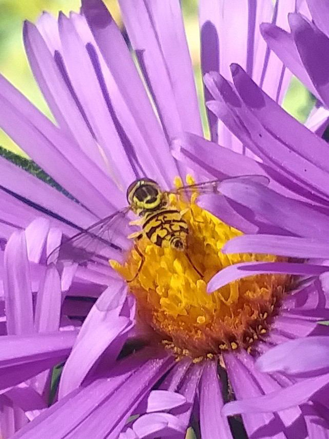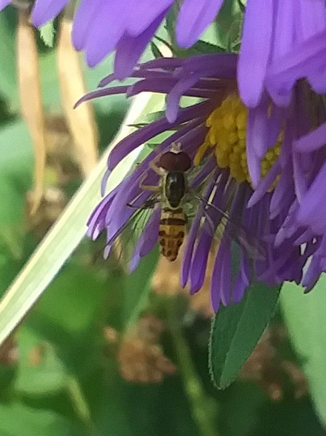 Adults can often be seen hovering over plants, a favorite activity that gives this family one of it’s common names. Syrphid flies do not bite or sting. |