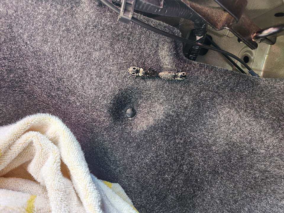 These critters were in the trunk of my car. I quickly moved them to the grass with a stick as I did not know what they were named. There were two of them attached together opposite the "eye area". They reared up out of my trunk. At first I thought it was a black snake. |