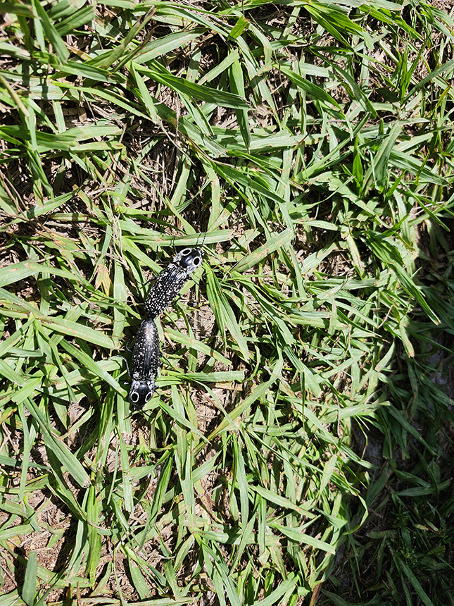 Some interesting interaction between a Firefly and an Eyed Click Beetle. I had seen fireflies at night but rarely during the day. Interesting it is a beetle and not a type of fly. This was also the first time I had ever seen an Eyed Click Beetle. The Eyed Click Beetle eventually gets rid of the overly curious Firefly |