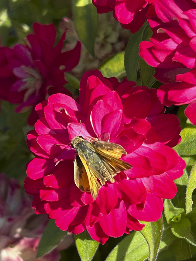 Fiery skipper, sachem, and whirlabout (which does not occur in Minnesota) are three orange skippers that are very common in the south and often appear together. Together they are referred to as the “wizards”, apparently because with their fast darting flight it requires a wizard to identify them in the field.