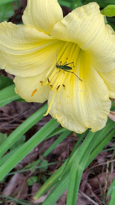 Insect on daylily. It appeared this insect was going to spend the night on the daylily. Checked on him over a few hours and was still there. |