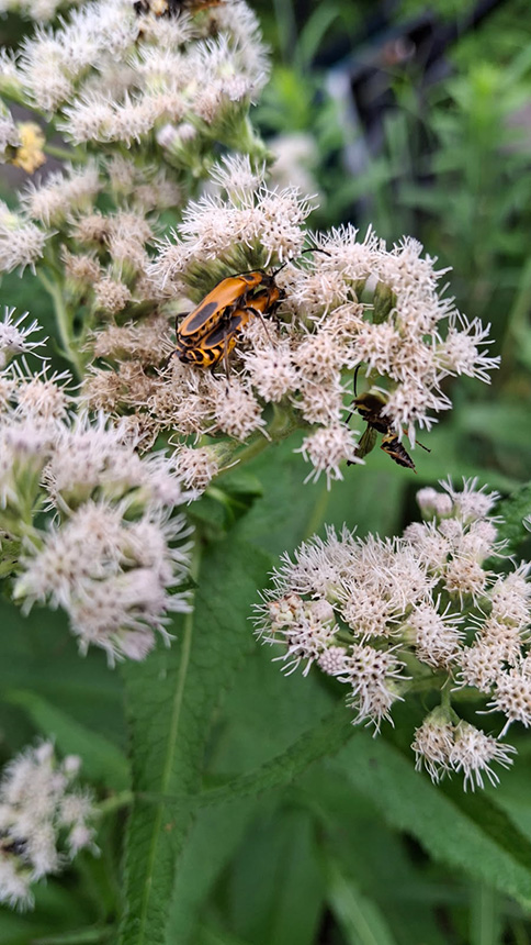 These guys show up late every summer and seem to only have one thing in mind. I find them everywhere except on my goldenrod. They love my panicle hydrangea. Wish they would eat the millions on aphids on my common milkweed! |