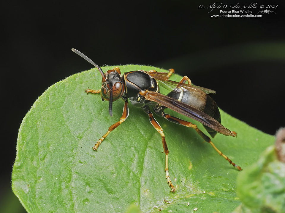 Paper Wasp (Vespidae: Polistes fuscatus) Female on Leaf |