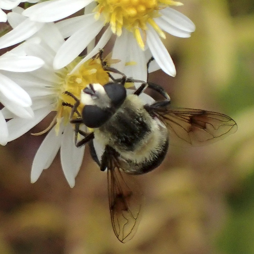 Eristalis anthophorina (orange-spotted drone fly) Eristalis anthophorina (orange-spotted drone fly) photos taken at Barnes Prairie, Racine Co., WI on October 11, 2022. These cute flies superficially resemble bumblebees. This one, a female, was about the size of a small worker bumblebee. I could tell that it wasn't a bumblebee (at a distance), as it darted quickly from flower to flower. |