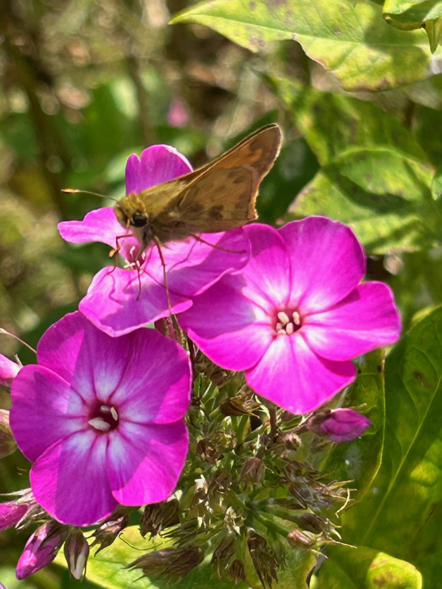 Sachem Skipper (female) enjoying a Zinnia (Atalopedes campestris) |