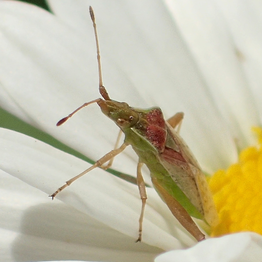Location: Barnes Prairie, Racine Co., WI Harmostes reflexus, scentless plant bug, photographed at Barnes Prairie, Racine Co., WI on May 23, 2024. This bug was on oxeye daisy. |